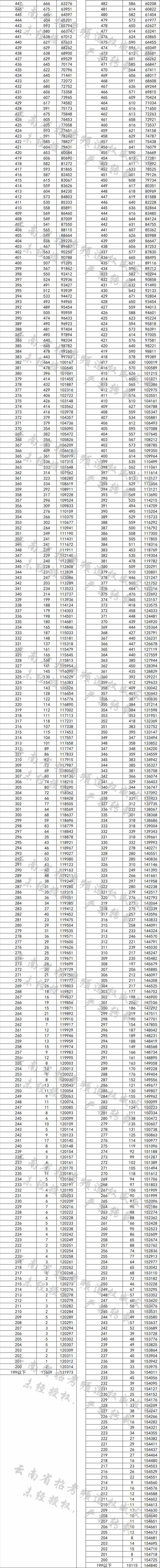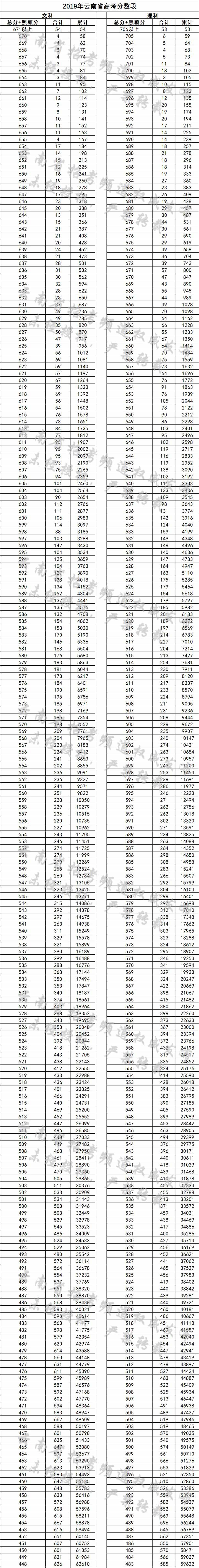 2019年云南高考成績分段統(tǒng)計表(文理科)