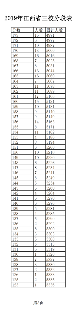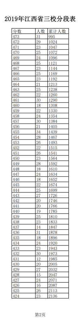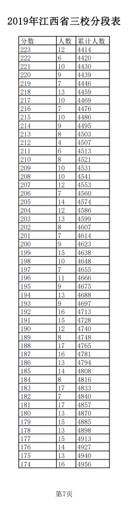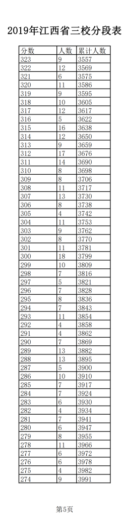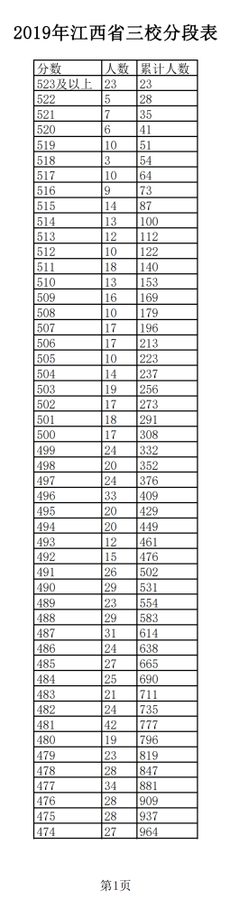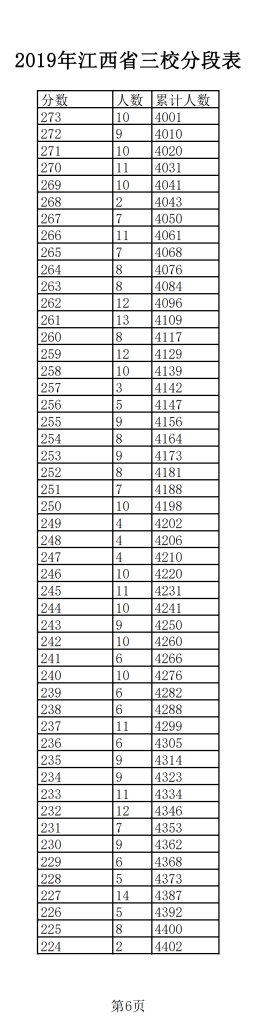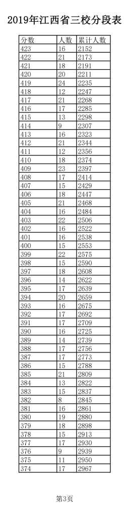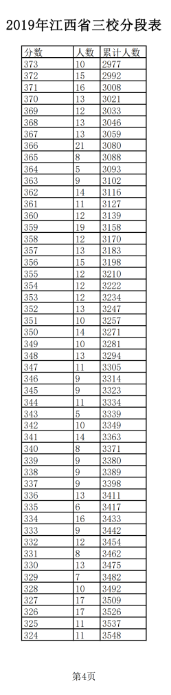 2019年江西普通高考三校成績分?jǐn)?shù)段表