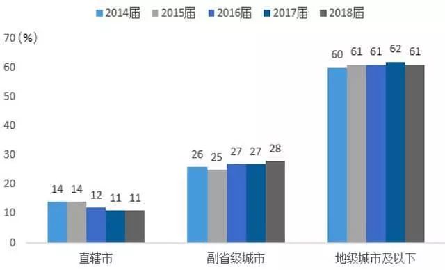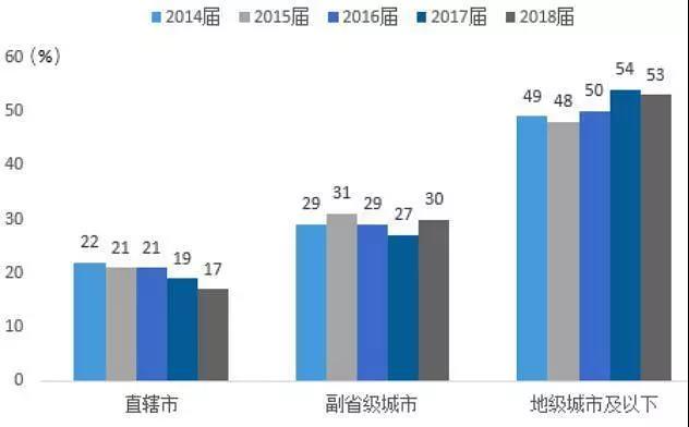 圖6 2014~2018屆本科畢業(yè)生就業(yè)城市類型分布變化
