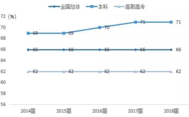 圖12 2014~2018屆大學畢業(yè)生的工作與專業(yè)相關度變化趨勢