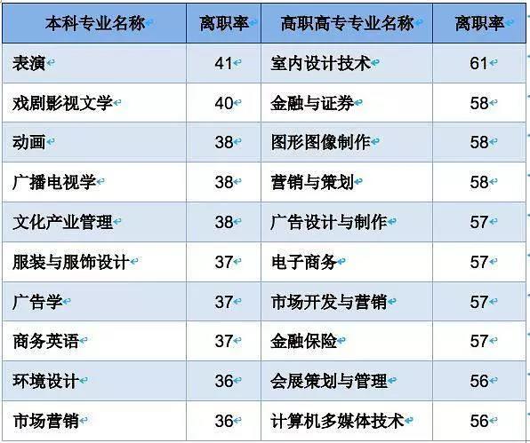 5.應屆畢業(yè)生離職率基本穩(wěn)定;藝術相關專業(yè)離職率最高