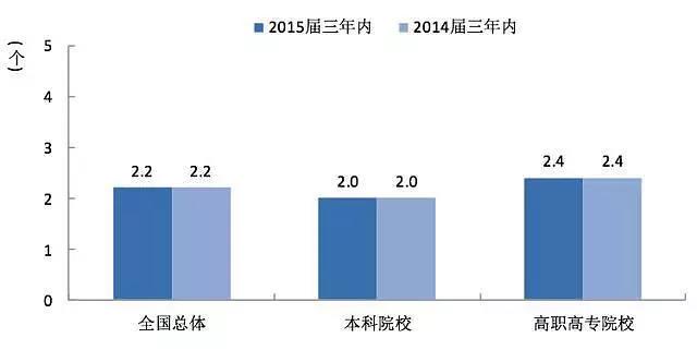 圖14 2015屆大學生畢業(yè)三年內(nèi)的平均雇主數(shù)(與2014屆三年內(nèi)對比)
