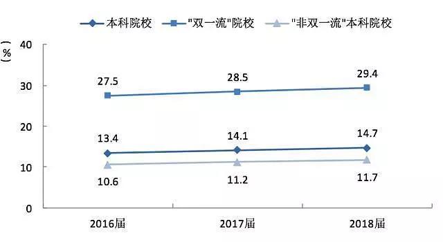 本科畢業(yè)生國內(nèi)讀研比例與上屆基本持平;主要動機是就業(yè)和職業(yè)發(fā)展需要2018屆本科畢業(yè)生國內(nèi)讀研的比例為14.7%。其中,“雙一流”院校2018屆畢業(yè)生國內(nèi)讀研的比例為29.4%,非“雙一流”本科院校2018屆畢業(yè)生國內(nèi)讀研的比例為11.7%(圖15)。