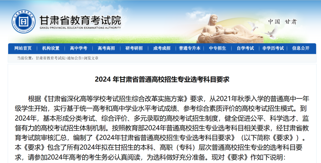 11月17日,第四批高考綜合改革7省市之一的甘肅省率先發(fā)布《2024 年甘肅省普通高校招生專業(yè)選考科目要求》(以下簡稱《選科要求》)。