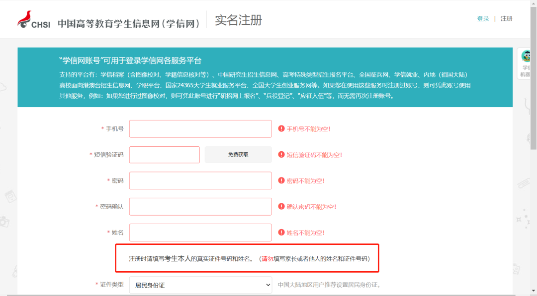 按照提示填寫信息。(考生本人真實姓名和證件號碼)