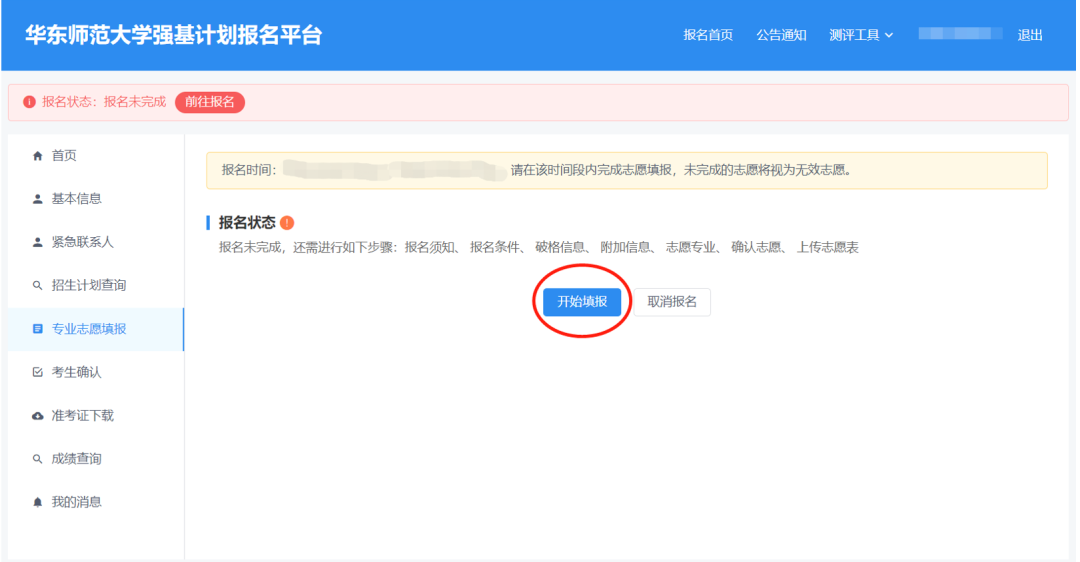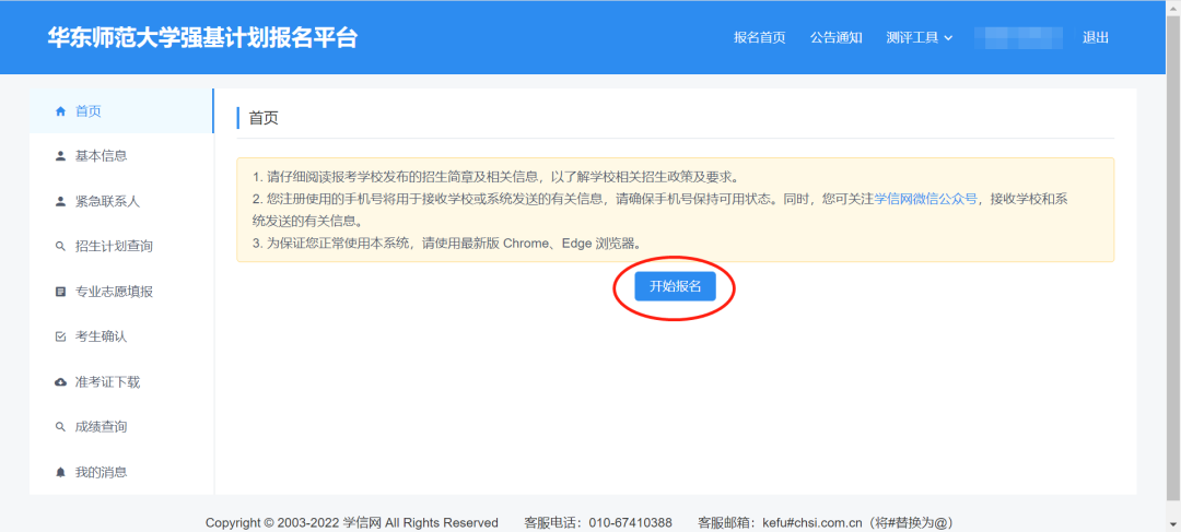 進入報名系統(tǒng),閱讀首頁須知后,點擊“開始報名”。