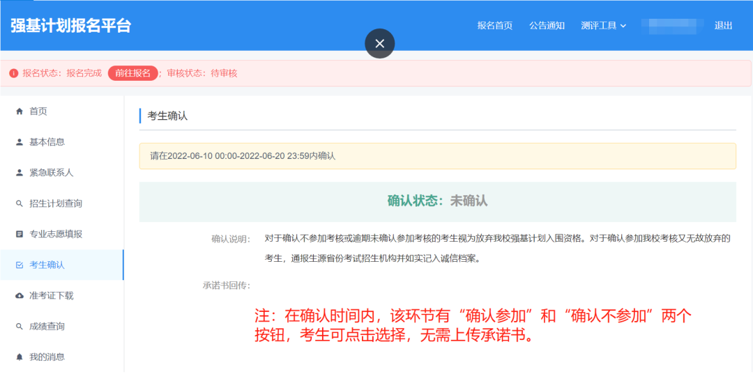 考生須在6月10日至6月20日進入報名系統(tǒng)確認是否參加測試,否則視為自動放棄參加測試。