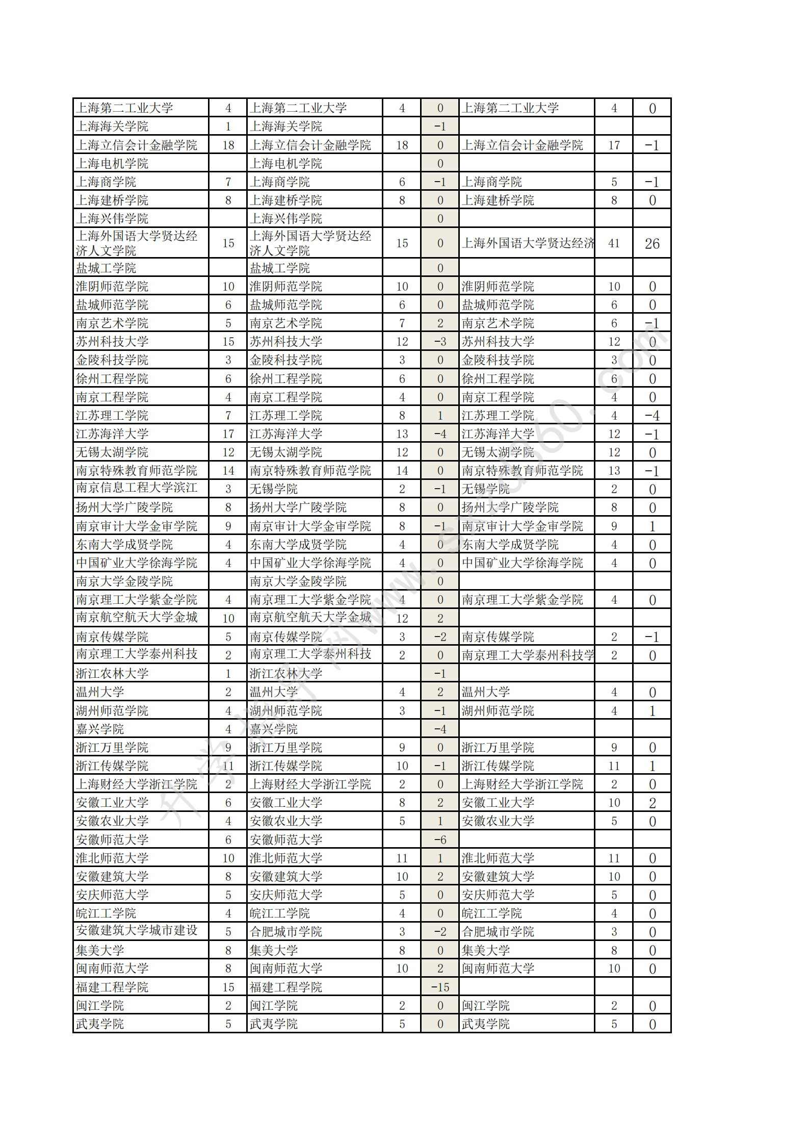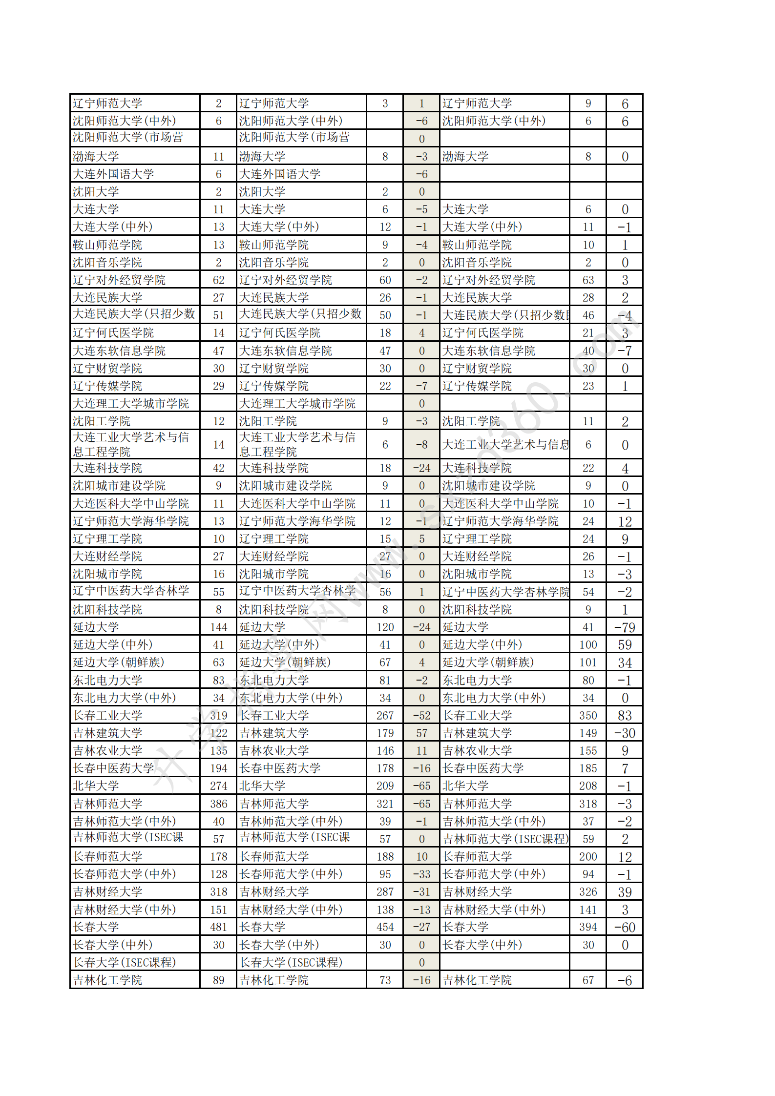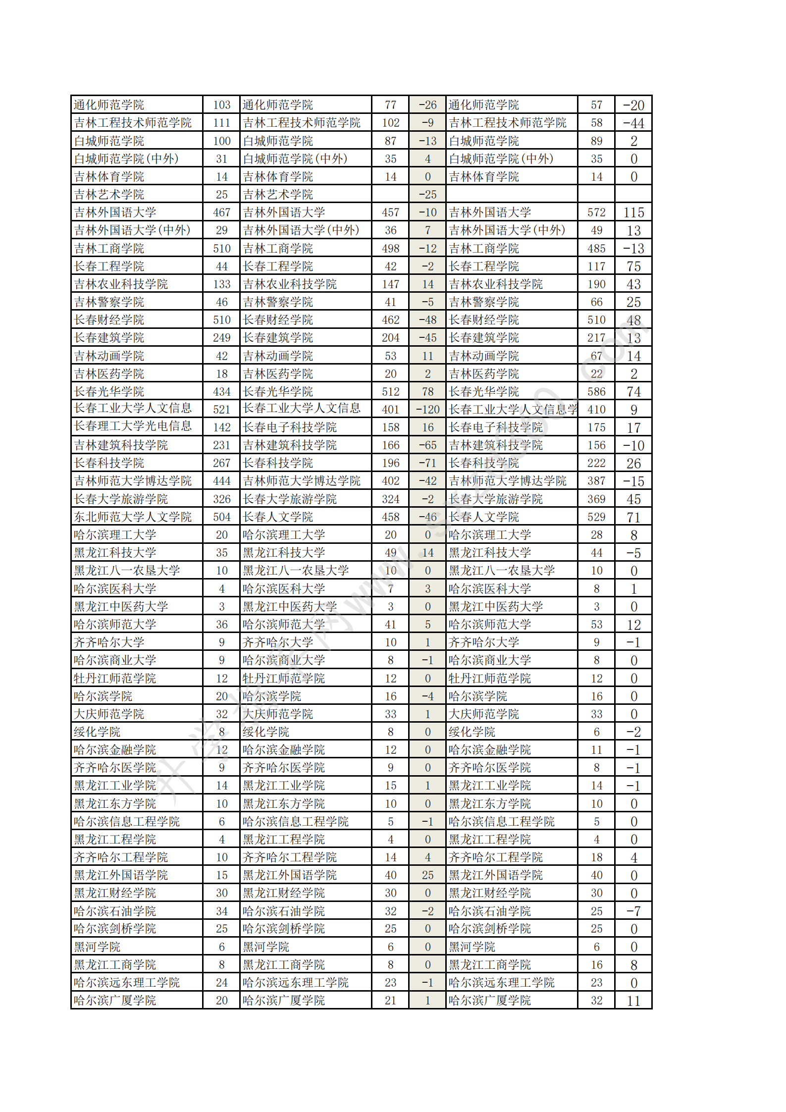 吉林省20-22年文史類2A增減分析表