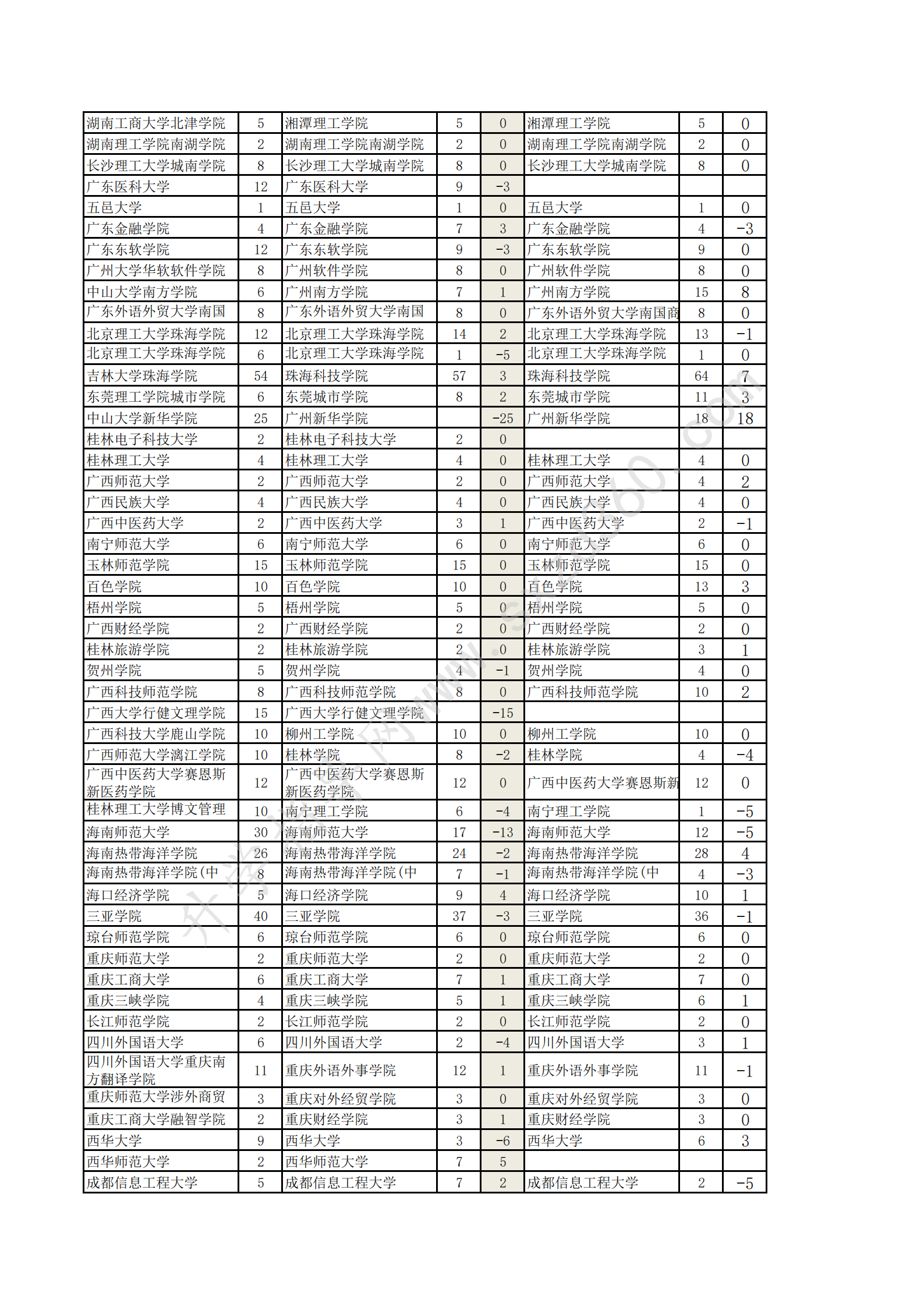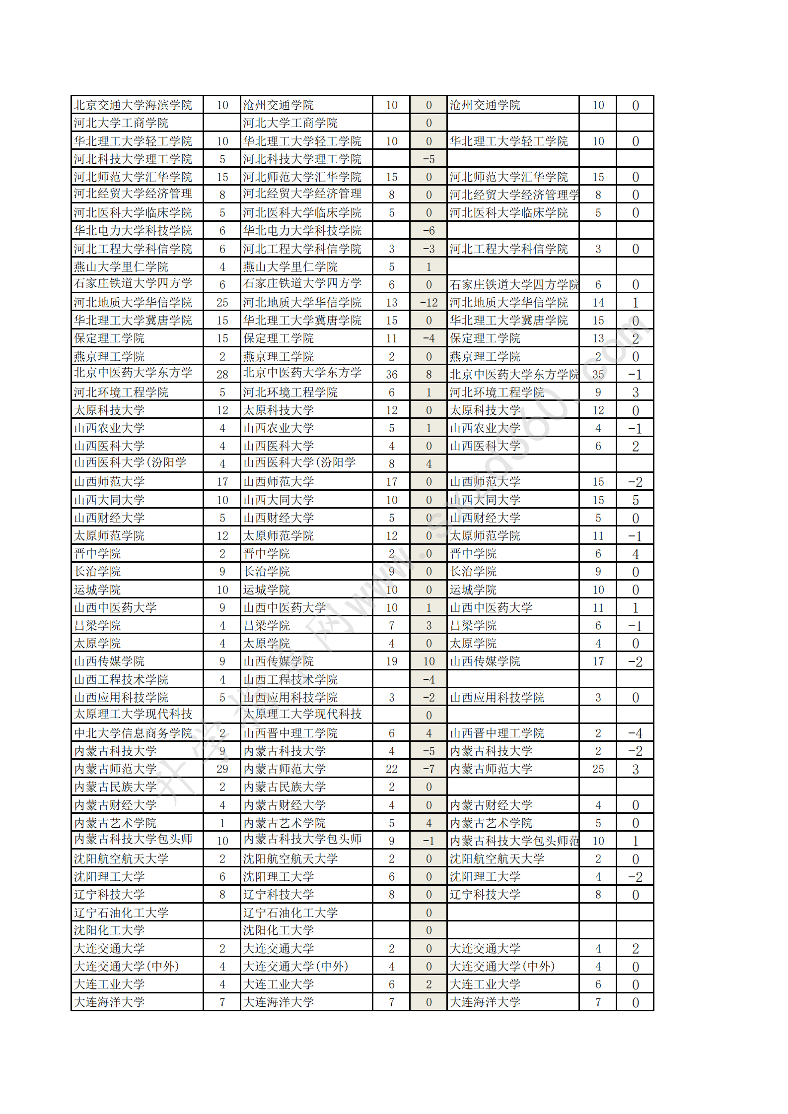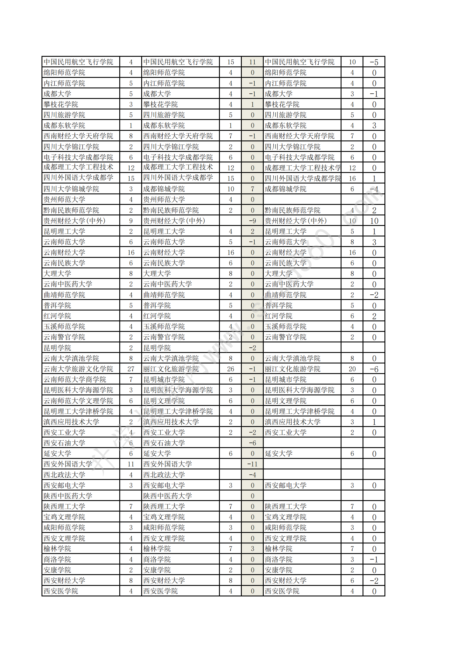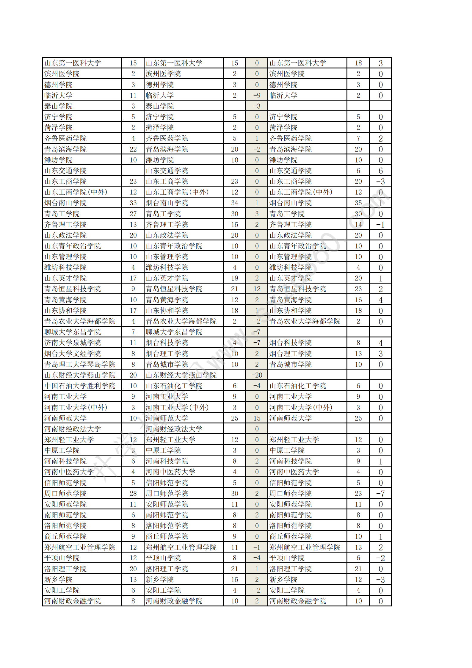 吉林省20-22年文史類2A增減分析表