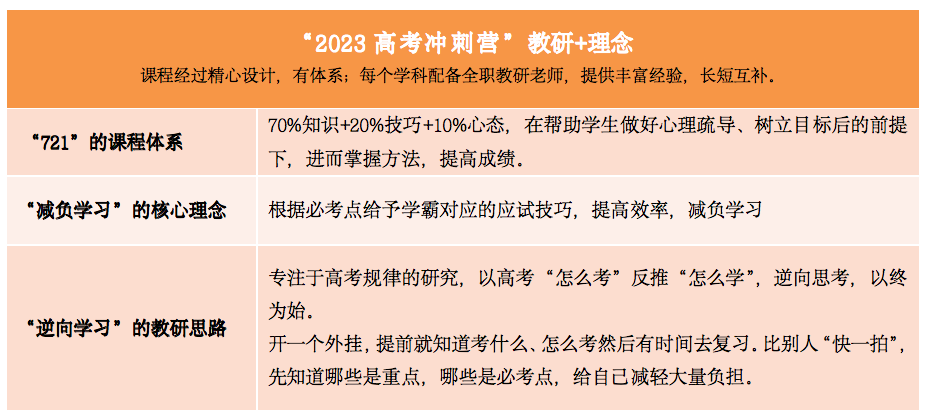針對高三,升學(xué)指導(dǎo)網(wǎng)上線了“2023高考沖刺營”分為“高中知識串講、高三復(fù)習(xí)方法、2022真題解析”等主題。共計23課時,希望能夠幫助你節(jié)省時間、提高效率,在這個寒假完美逆襲。