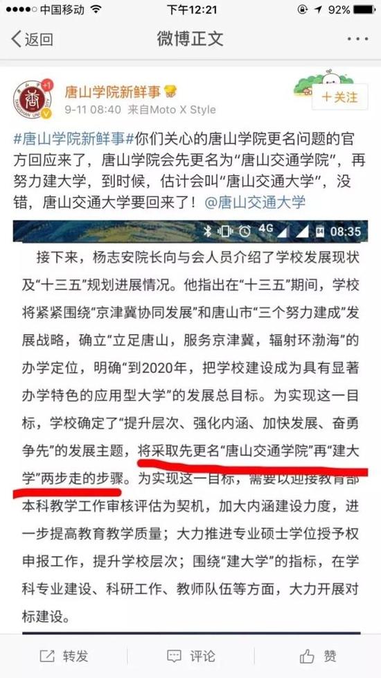 這位負(fù)責(zé)人強(qiáng)調(diào),對于近期網(wǎng)上出現(xiàn)的反映唐山學(xué)院更名涉嫌校名侵權(quán)的問題,教育部高度重視,并將在委托專家考察和評議等審批環(huán)節(jié),結(jié)合學(xué)校的歷史沿革、文化傳承、層次類型、辦學(xué)定位、學(xué)科特色等,對擬使用名稱的規(guī)范性、合法性進(jìn)行充分論證和審核,確保其使用名實相符的名稱,妥善保護(hù)相關(guān)高校的合法權(quán)益。