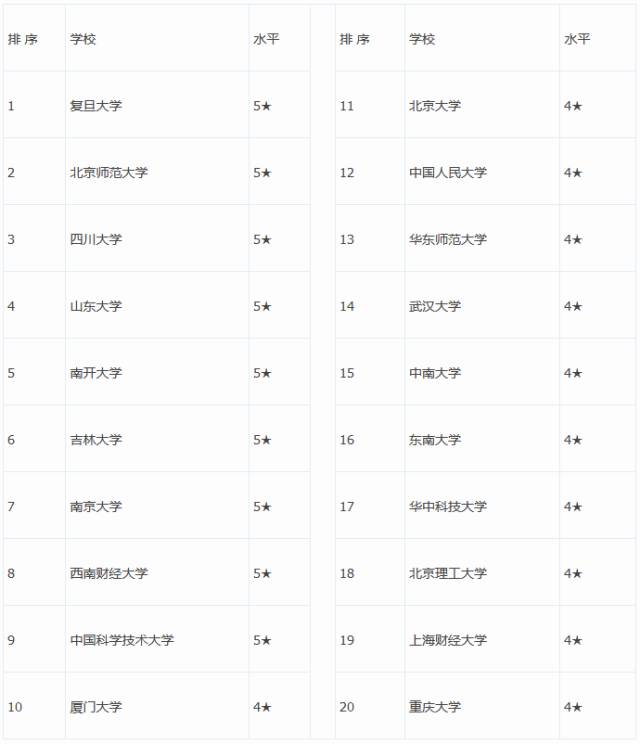 ○ 2015-2016年經(jīng)濟(jì)學(xué)專業(yè)大學(xué)排名: