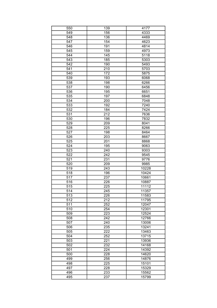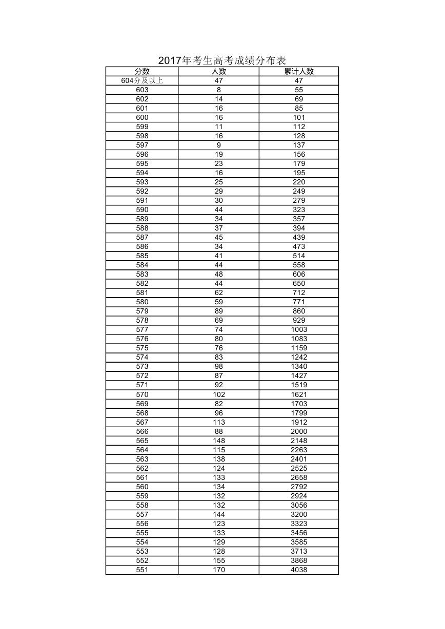 2017年上海高考成績(jī)一分一段表