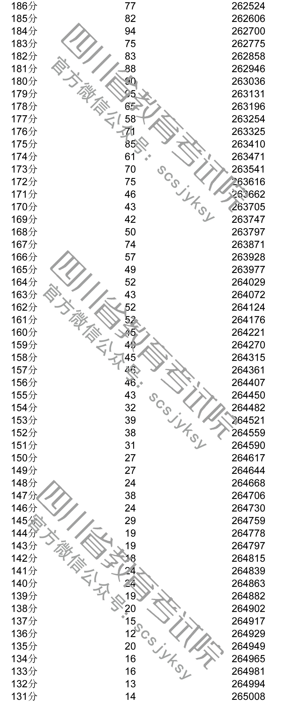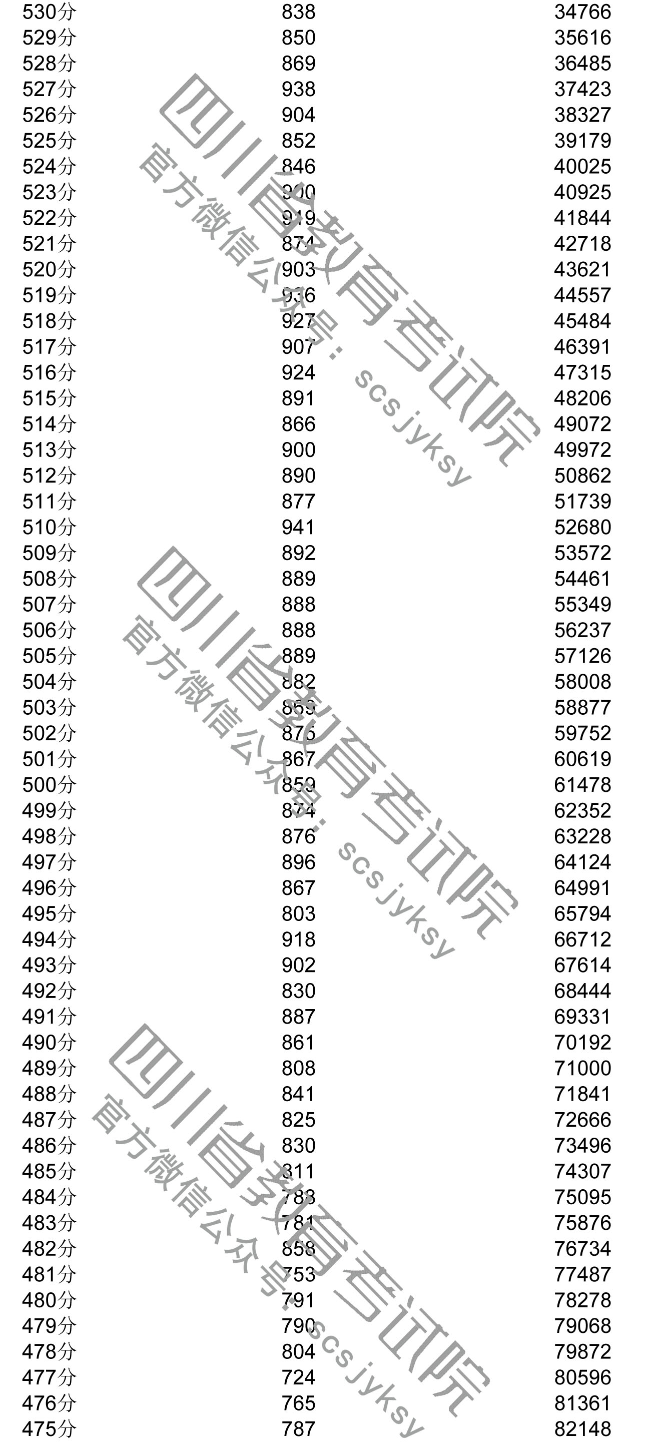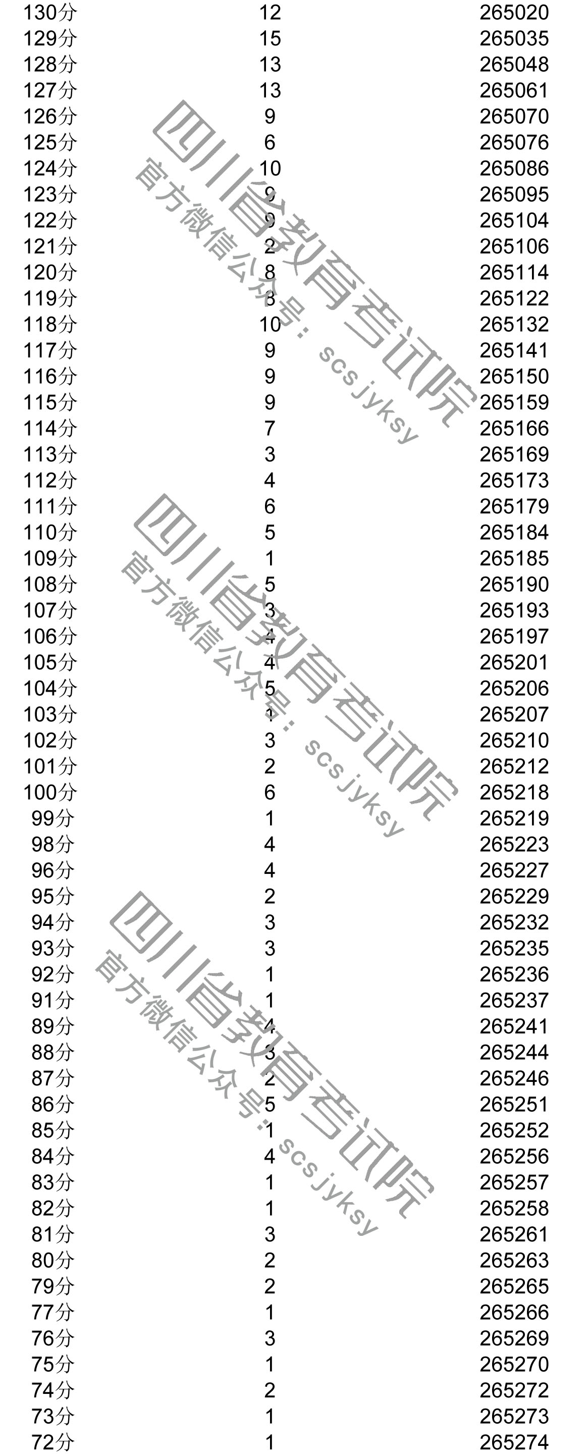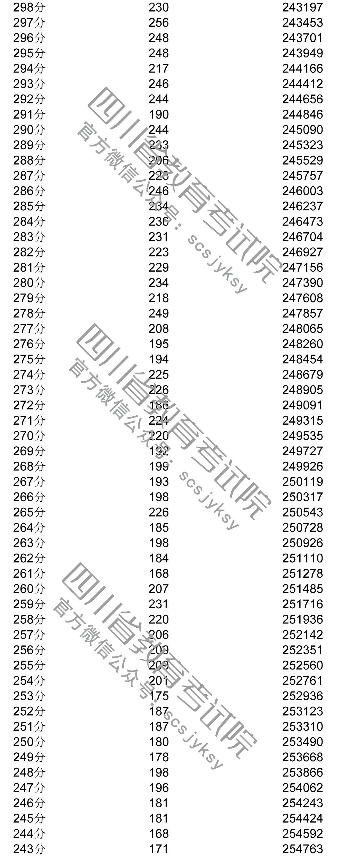 四川教育考試院網(wǎng)站同時(shí)公布一分一段表。其中,四川省2018年普通高考理科成績(jī)分段統(tǒng)計(jì)表詳細(xì)如下