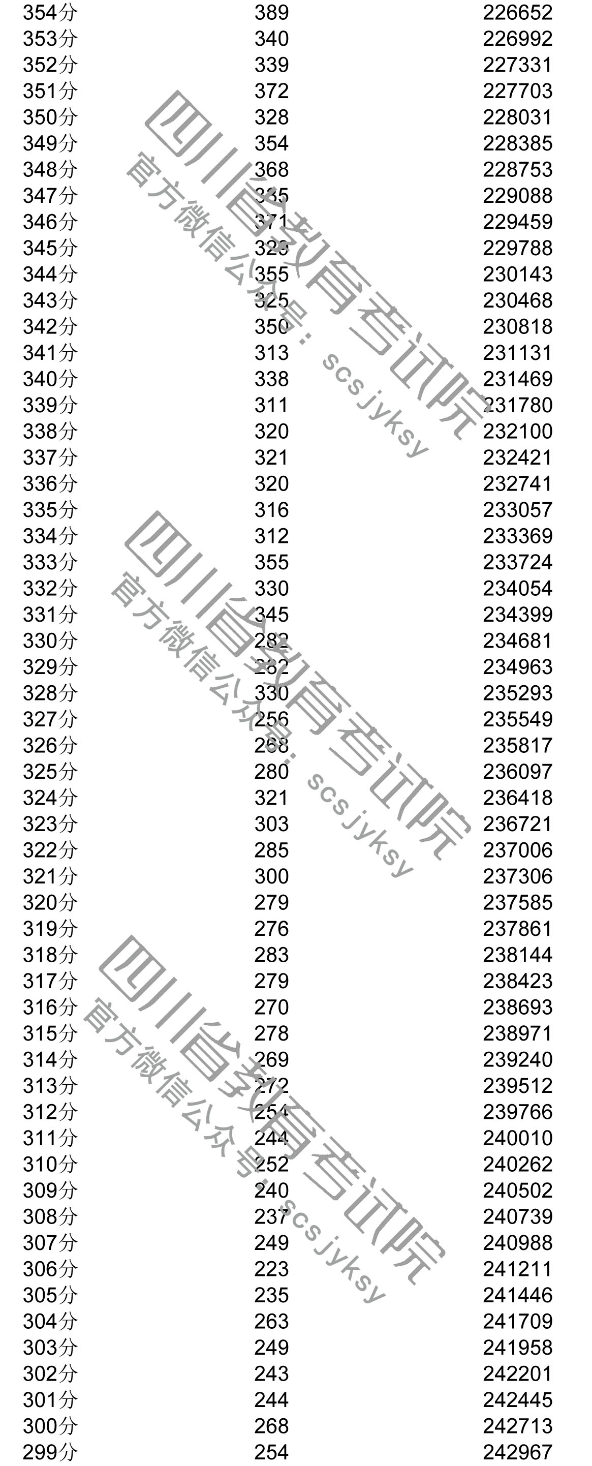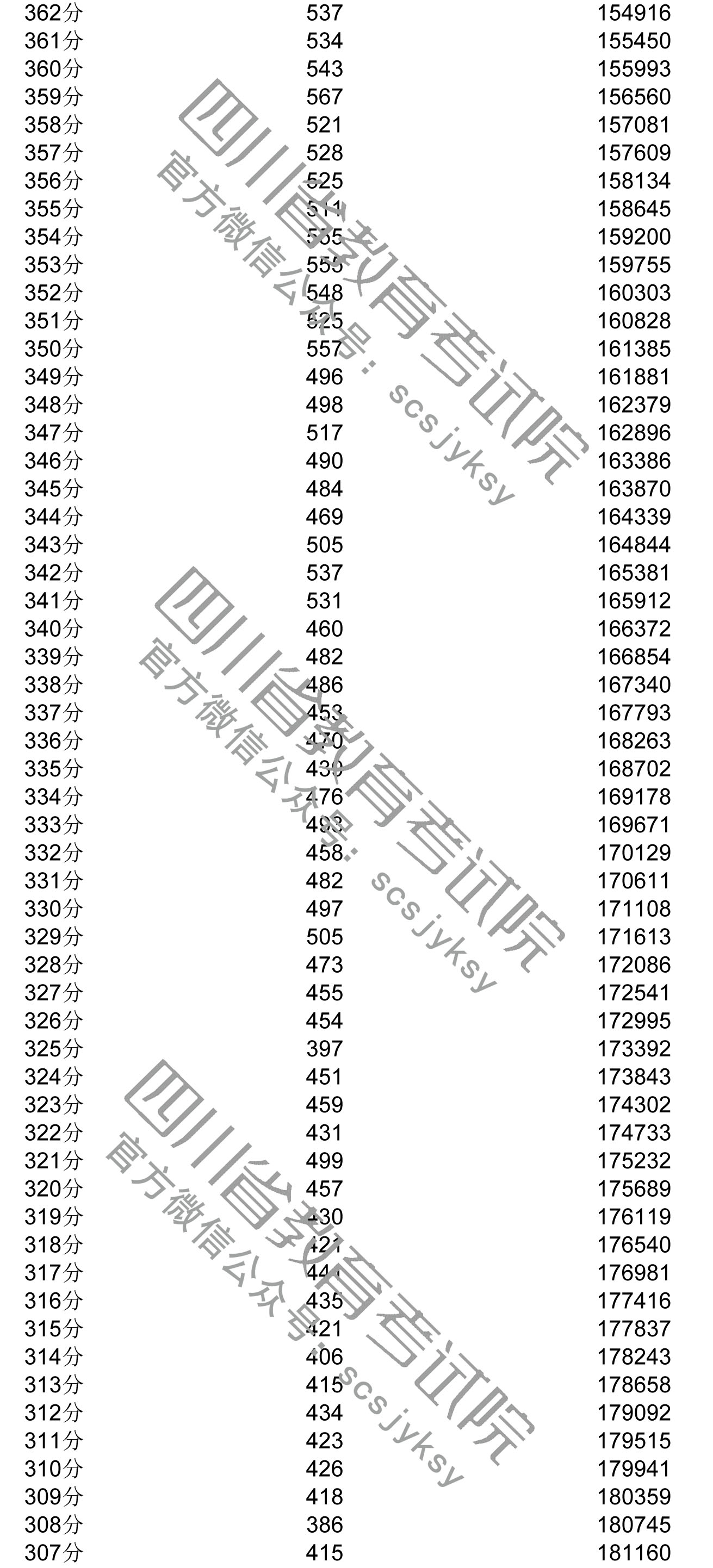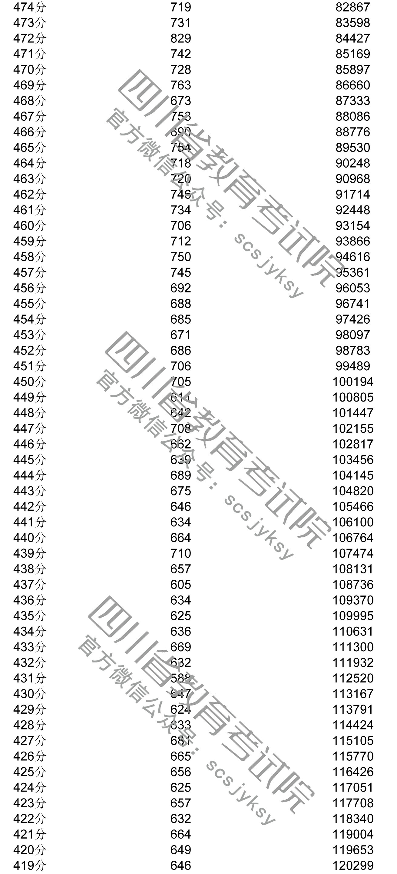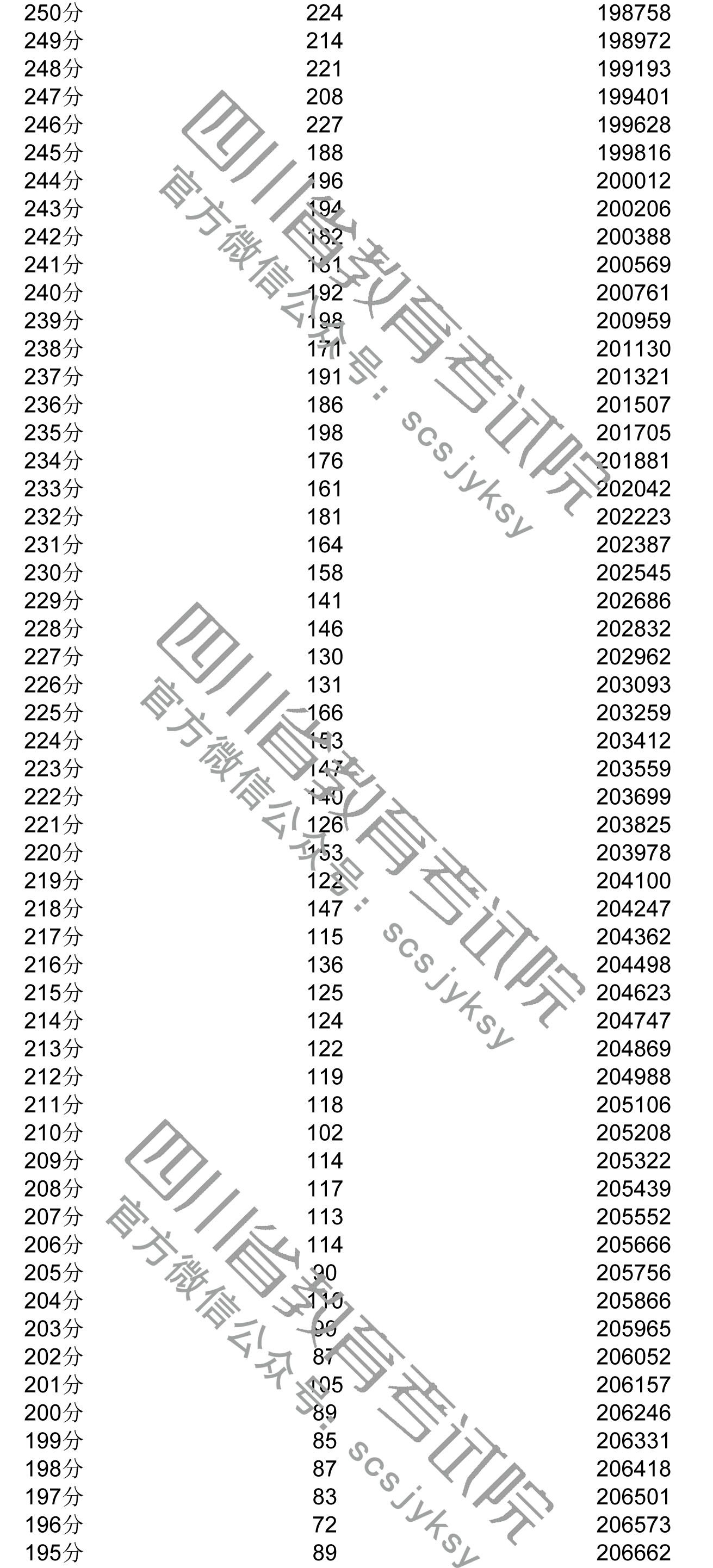 四川教育考試院網(wǎng)站同時(shí)公布一分一段表。其中,四川省2018年普通高考理科成績(jī)分段統(tǒng)計(jì)表詳細(xì)如下