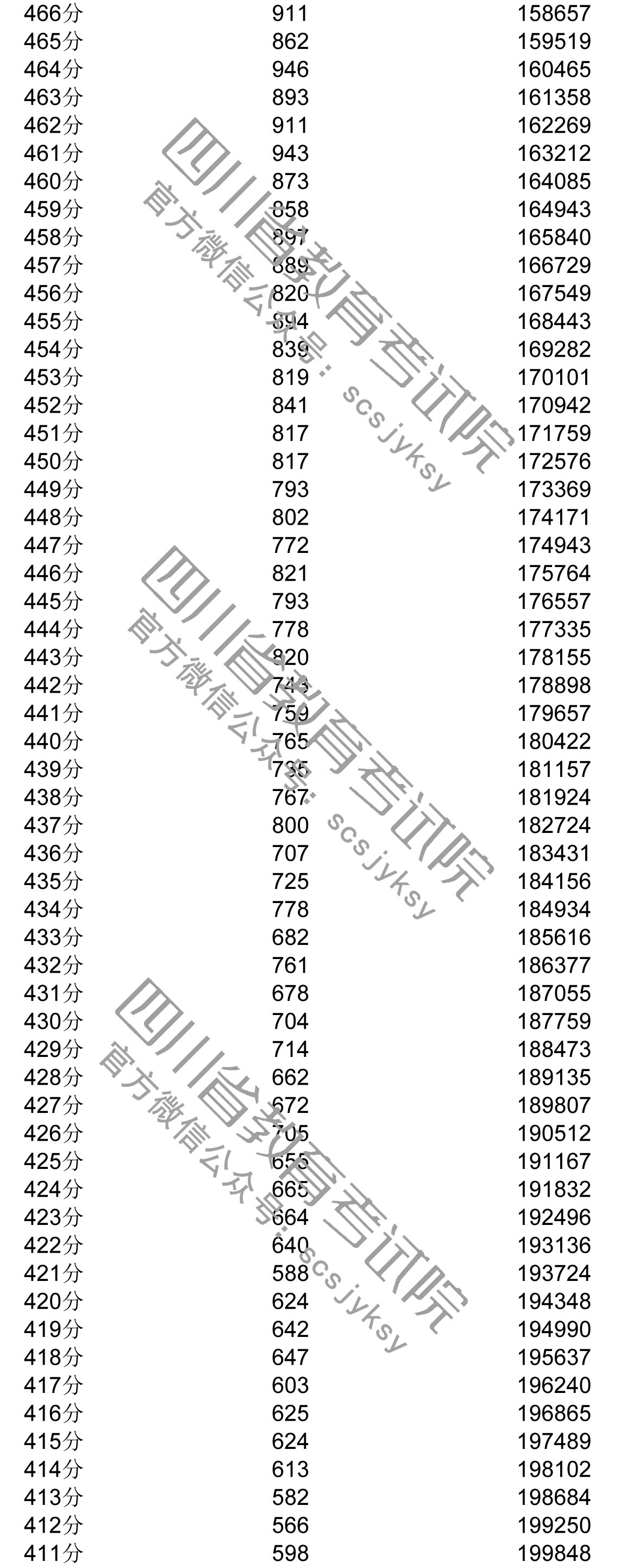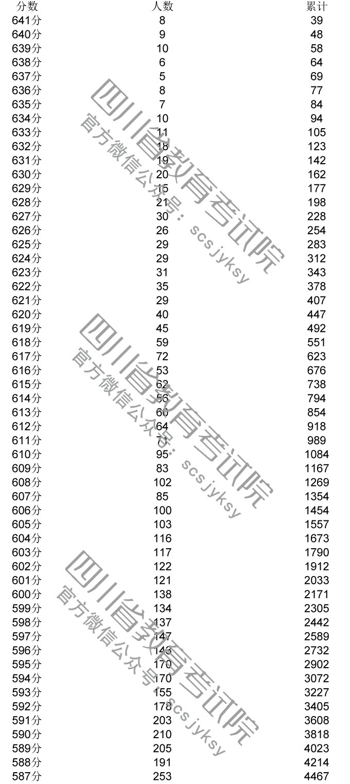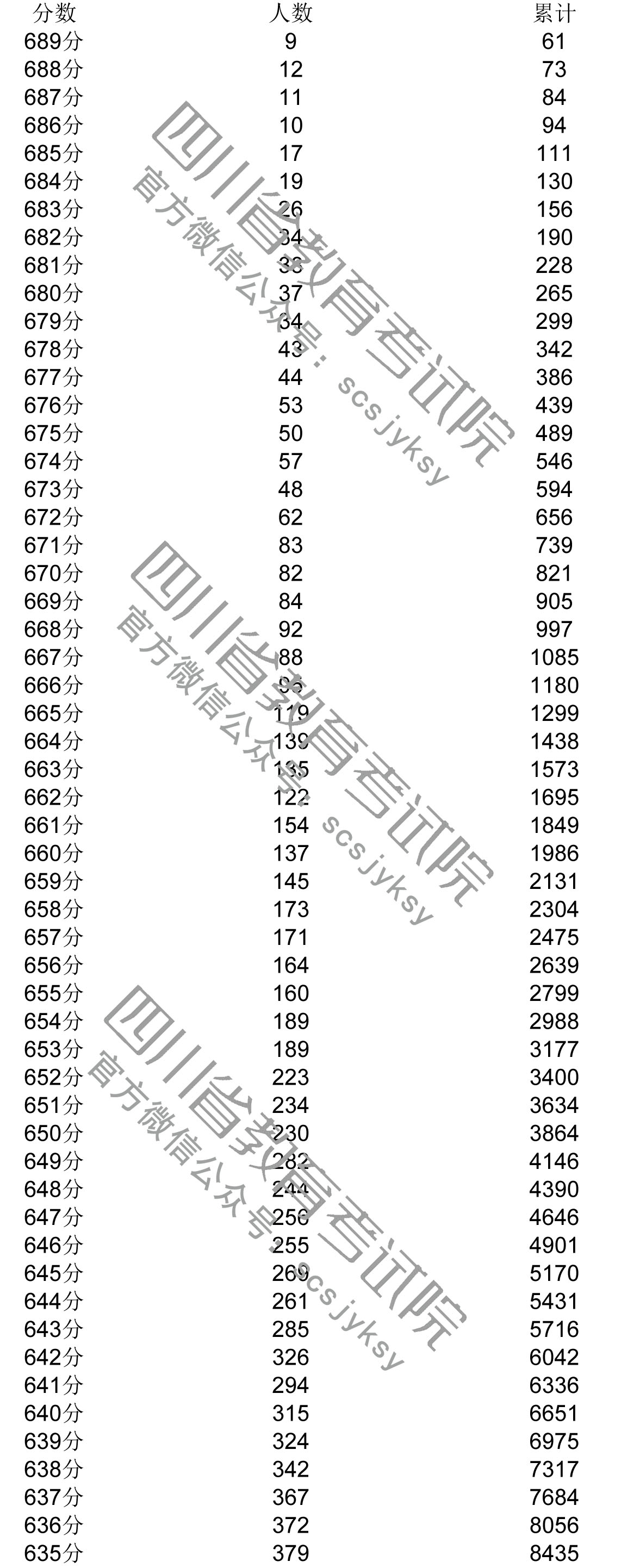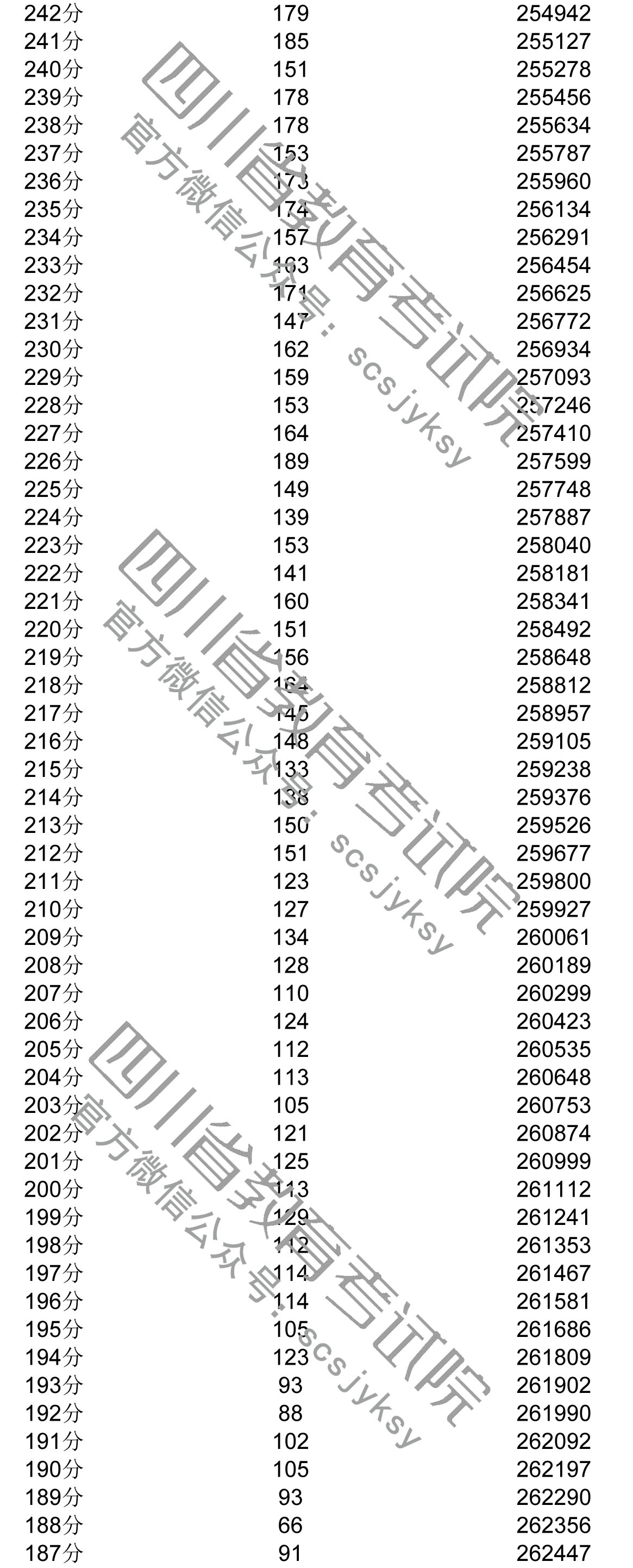 四川教育考試院網(wǎng)站同時(shí)公布一分一段表。其中,四川省2018年普通高考理科成績(jī)分段統(tǒng)計(jì)表詳細(xì)如下