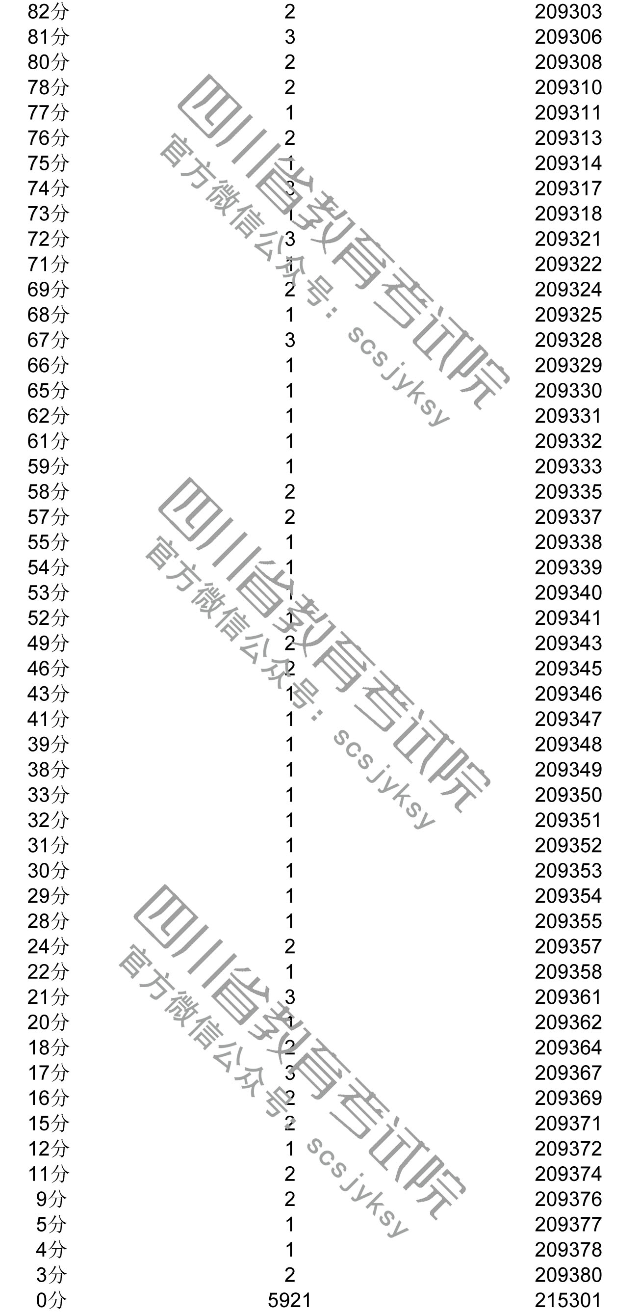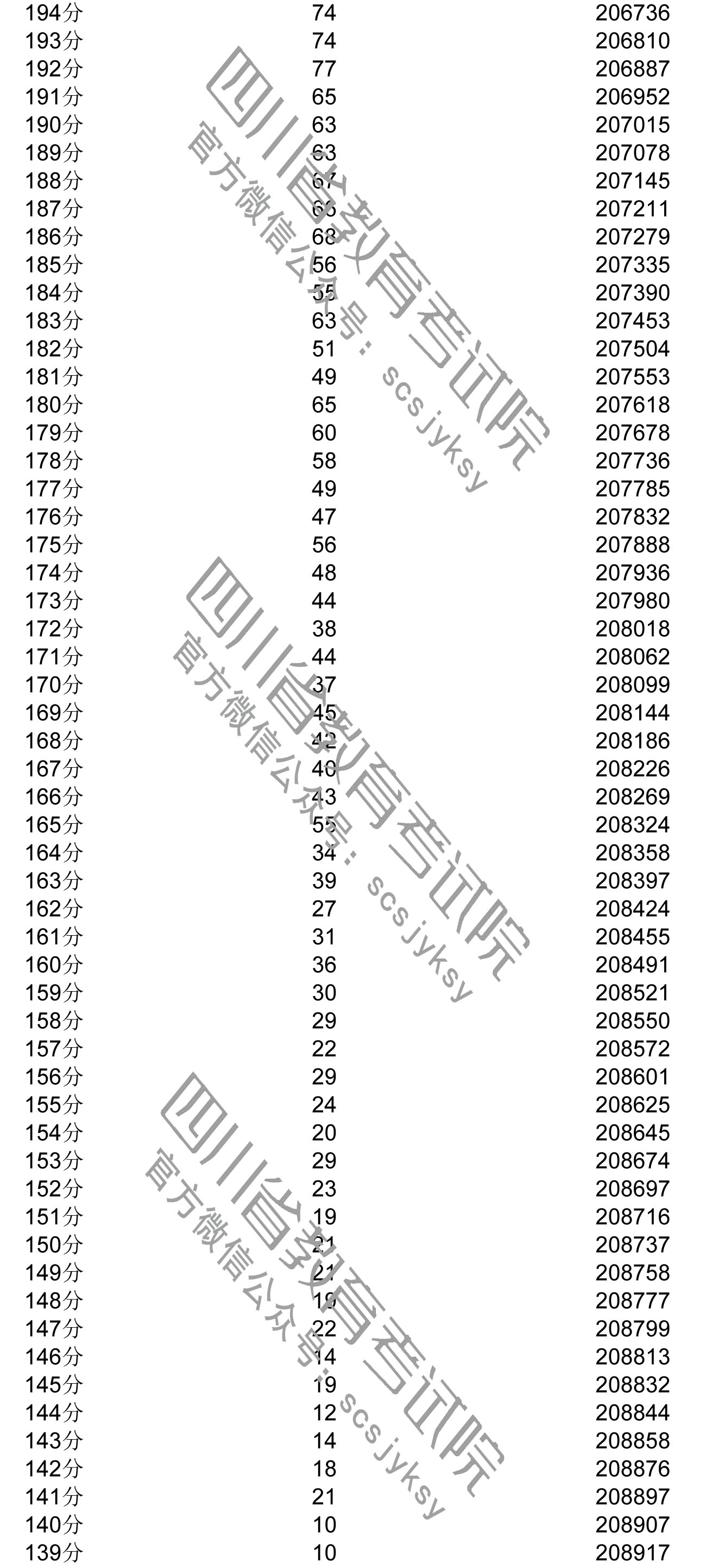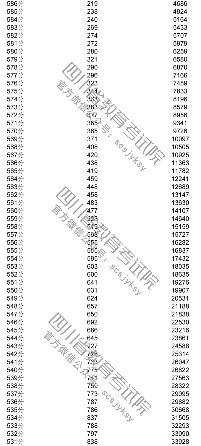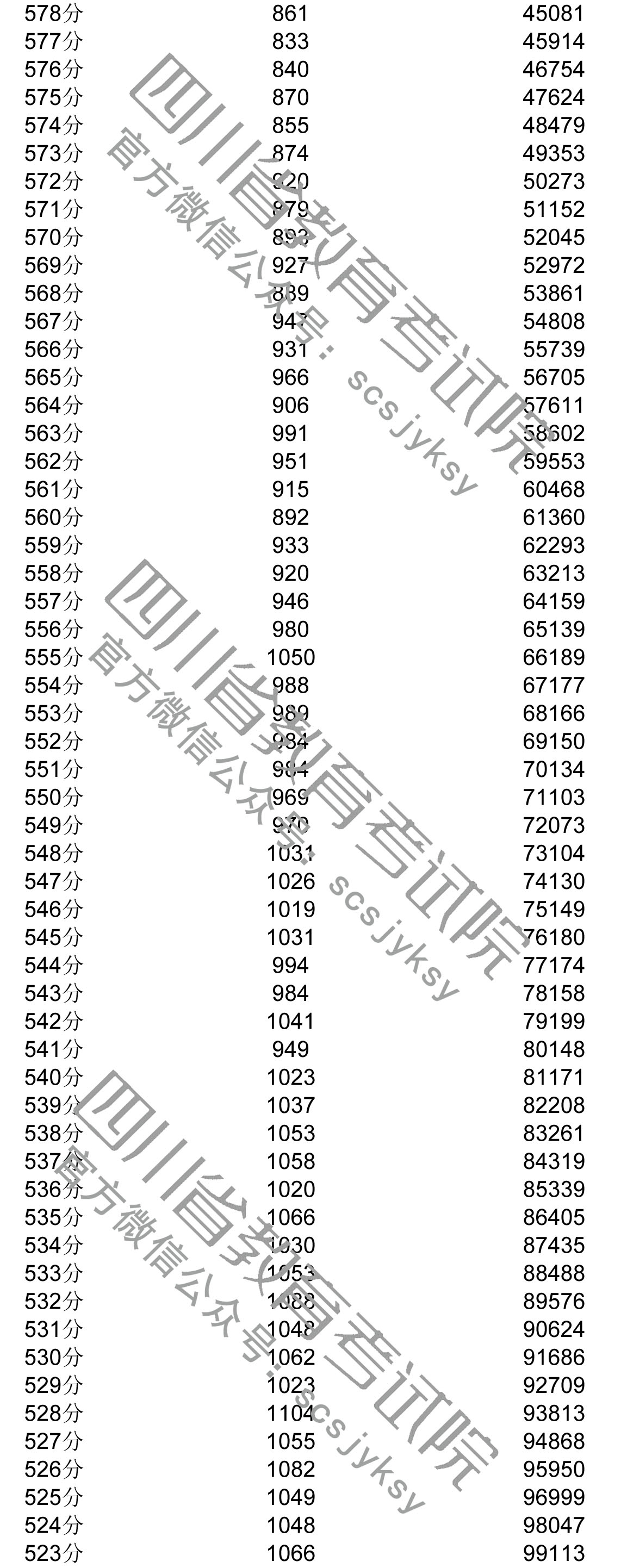 四川教育考試院網(wǎng)站同時(shí)公布一分一段表。其中,四川省2018年普通高考理科成績(jī)分段統(tǒng)計(jì)表詳細(xì)如下