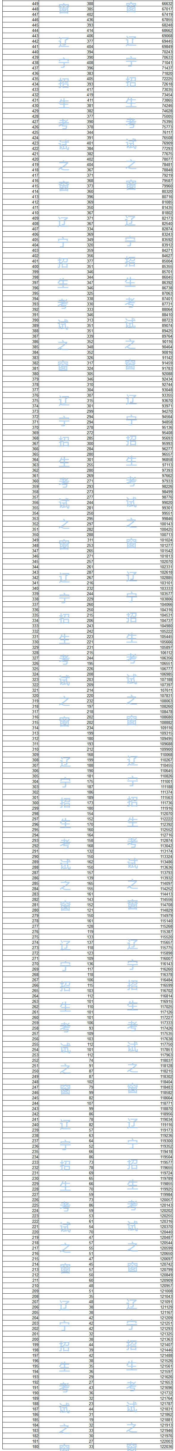 2018年遼寧省普通高考成績一分一段統(tǒng)計(jì)表 (文史)