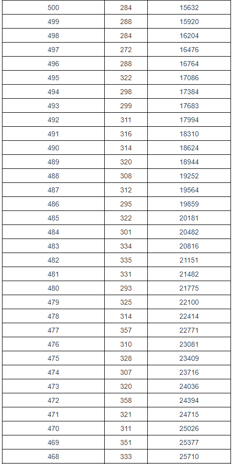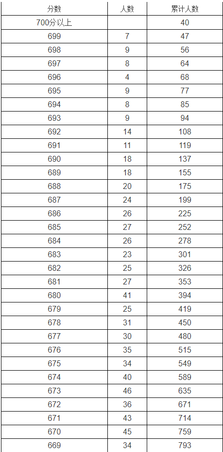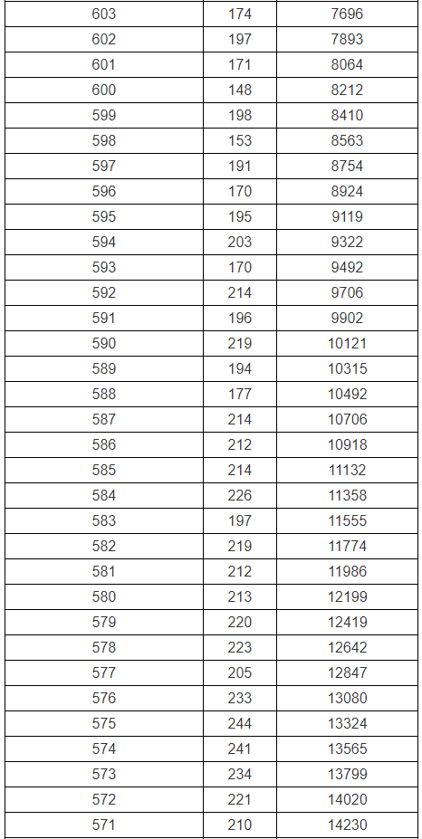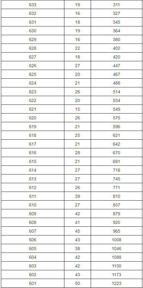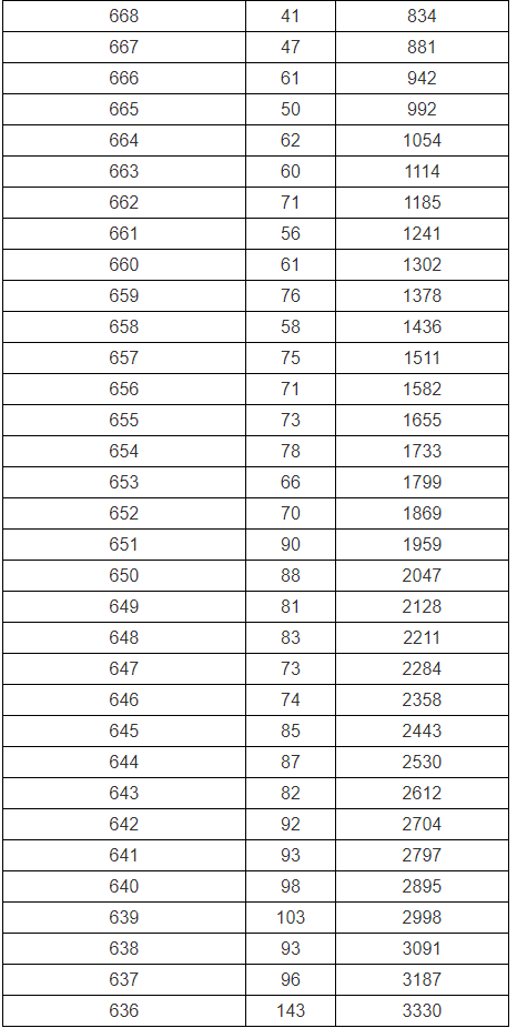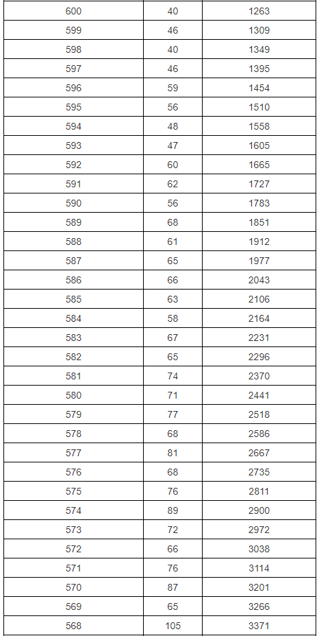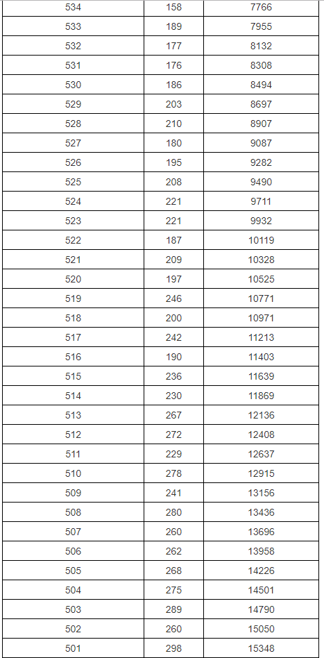 2018年陜西高考考生成績統(tǒng)計表(文史、藝文)