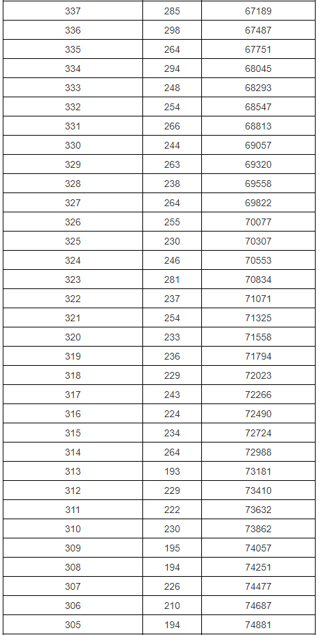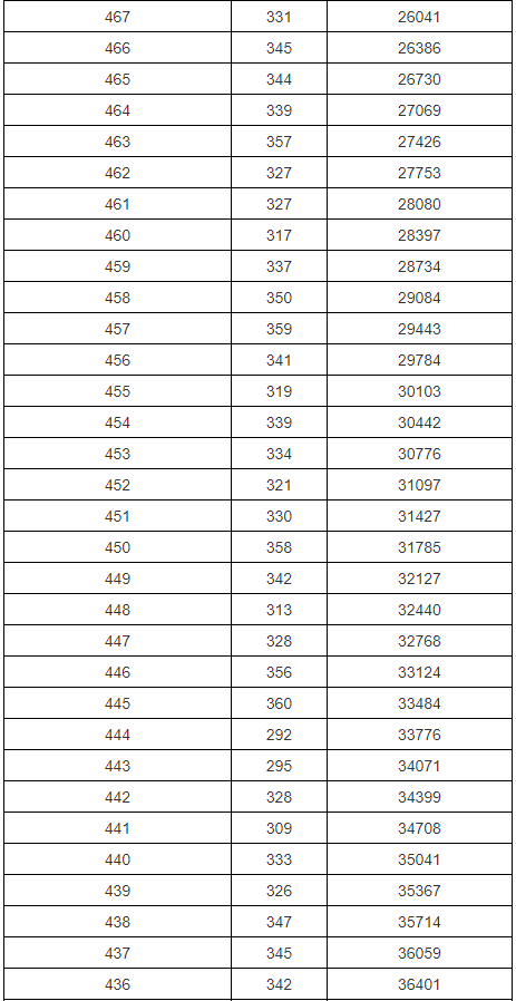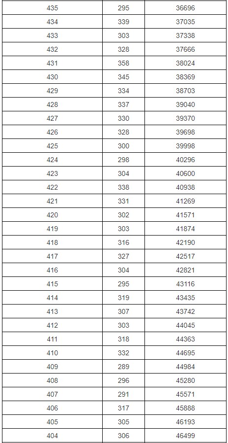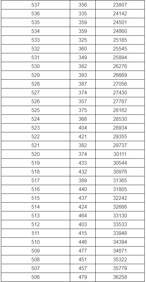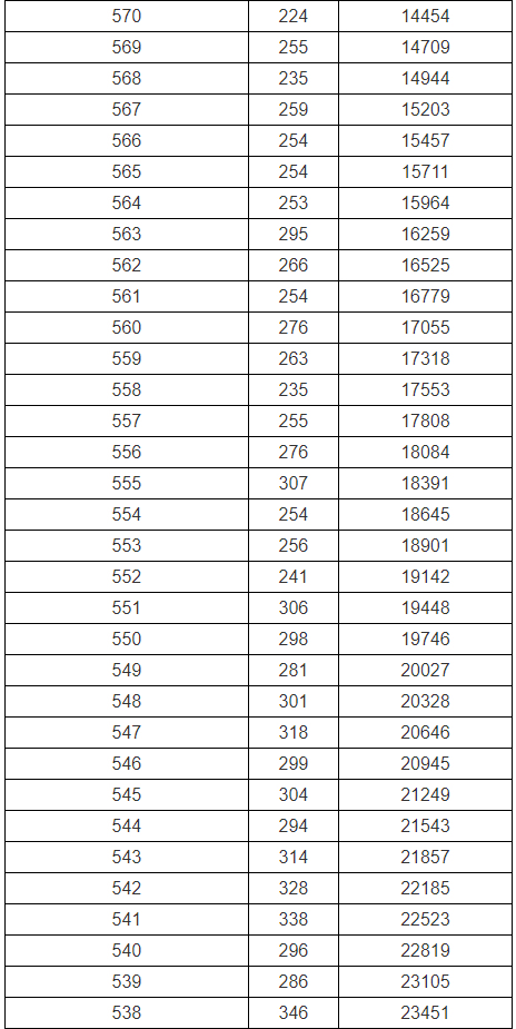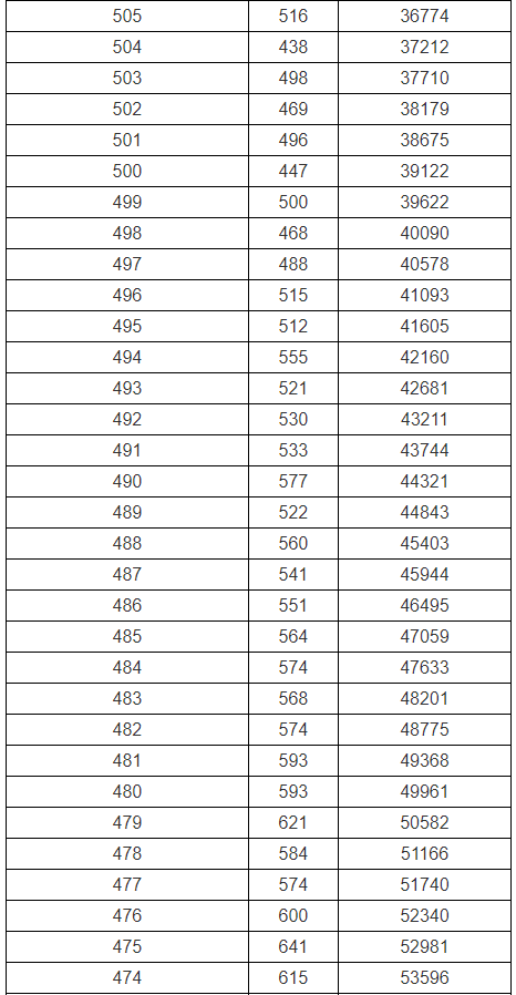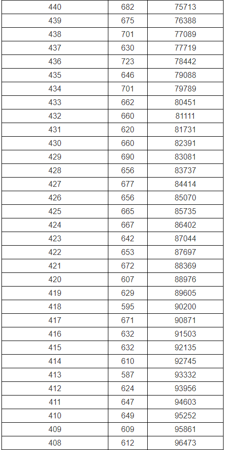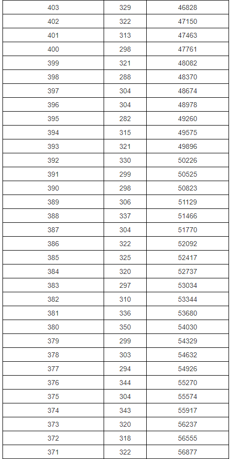 2018年陜西高考考生成績統(tǒng)計表(文史、藝文)