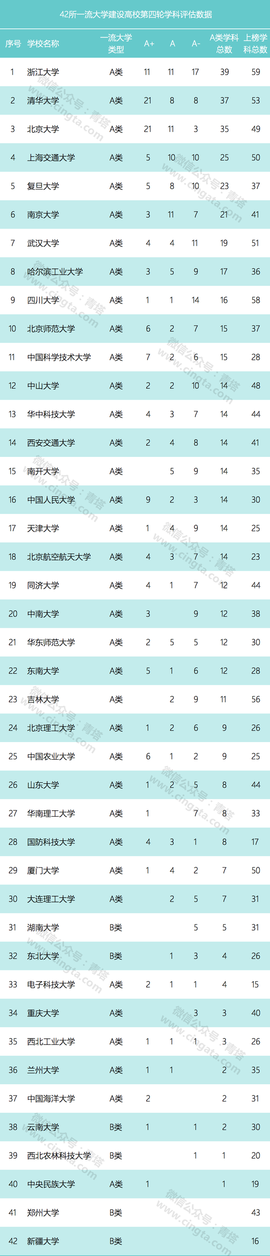學(xué)科建設(shè)是高校雙一流建設(shè)的核心任務(wù)。本部分重點(diǎn)來(lái)看看第四輪學(xué)科評(píng)估和近三年42所一流大學(xué)建設(shè)高校的ESI數(shù)據(jù)。