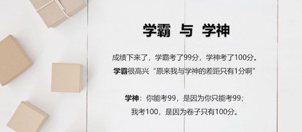 舉個(gè)通俗的例子來(lái)說(shuō),學(xué)生們之間總會(huì)傳說(shuō)“XX是學(xué)霸”、“XX是學(xué)神”,二者的區(qū)別就在于潛能(潛在的能力,未顯的)。可能會(huì)有同學(xué)勤勤懇懇,認(rèn)真預(yù)復(fù)習(xí),認(rèn)真刷題,成為學(xué)業(yè)中的佼佼者,也即是“學(xué)霸”;但也會(huì)有同學(xué),你看他平時(shí)除了上課之外都不怎么學(xué)習(xí),但是做作業(yè)幾乎沒(méi)有阻礙,就是很順暢的完成難題,考試分?jǐn)?shù)也很理想,這樣的同學(xué)可能就是其他同學(xué)口中的“學(xué)神”。