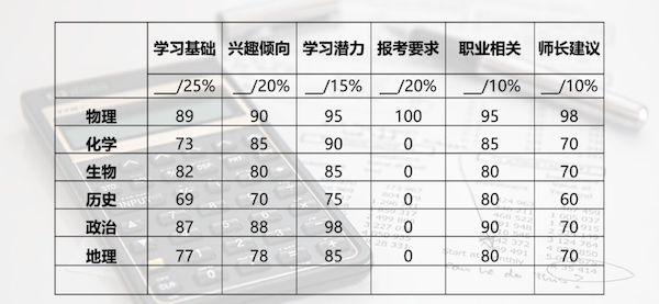 經(jīng)過(guò)各因素評(píng)價(jià),得分加權(quán)之后,最終比較各學(xué)科的總分,我們就可以獲得最為適合的選科組合。