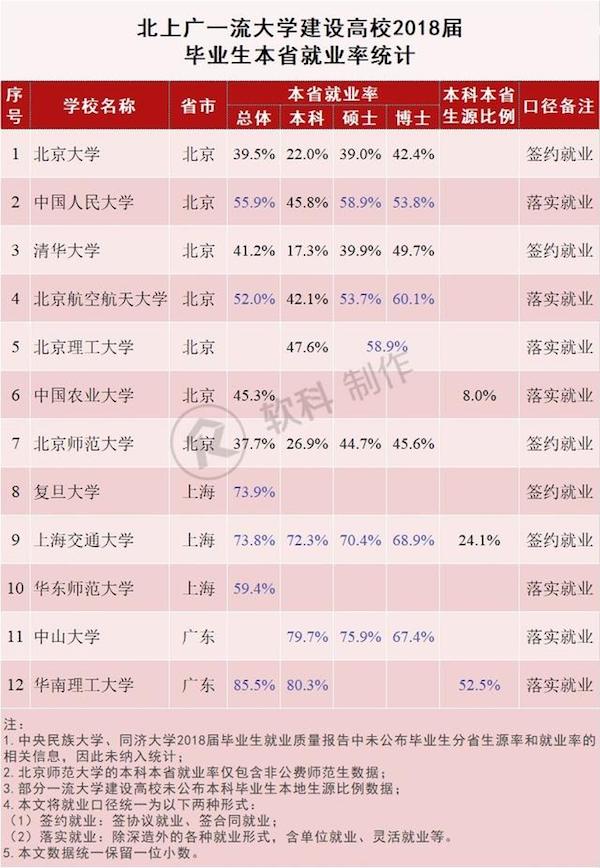 華南理工大學(xué)2018年畢業(yè)生留在廣東就業(yè)的比例高達(dá)85.5%,本科畢業(yè)生也有超過(guò)80%選擇留在廣東,而實(shí)際上華南理工大學(xué)的本科生廣東生源比例僅為52.5%。另一所一流大學(xué)中山大學(xué)的本科畢業(yè)生留在廣東的比例也接近八成。廣東也因此超過(guò)京滬成為留住本省一流大學(xué)學(xué)子最多的省份!