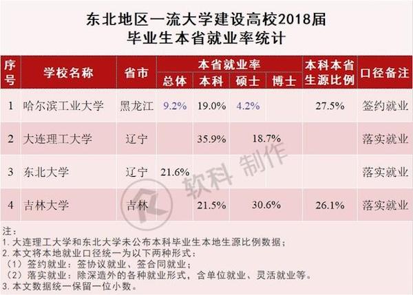 在東北的四所一流大學(xué)建設(shè)高校中,大連理工大學(xué)是唯一的本省就業(yè)率較高的大學(xué),這主要?dú)w功于它位于“濱城”大連。大連理工大學(xué)有35.85%的畢業(yè)生留在遼寧省就業(yè),而其中大連市就占了30.29%。