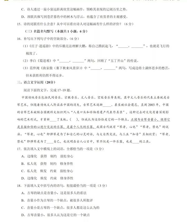 全國卷I·語文·原卷及標(biāo)準(zhǔn)答案