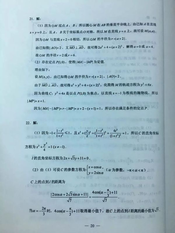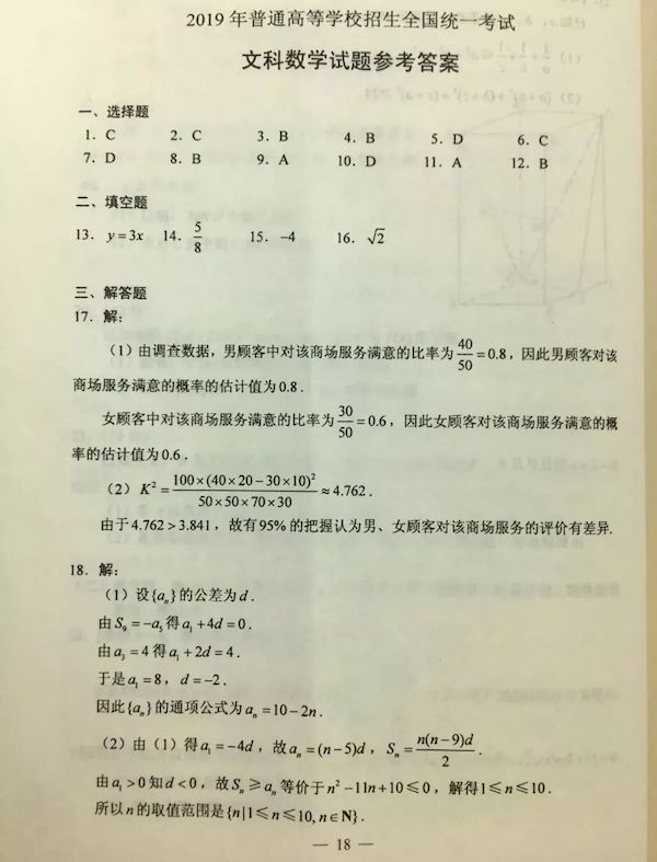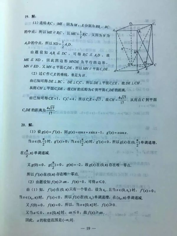 2019全國卷 I ·理科數(shù)學(xué)·標(biāo)準(zhǔn)答案