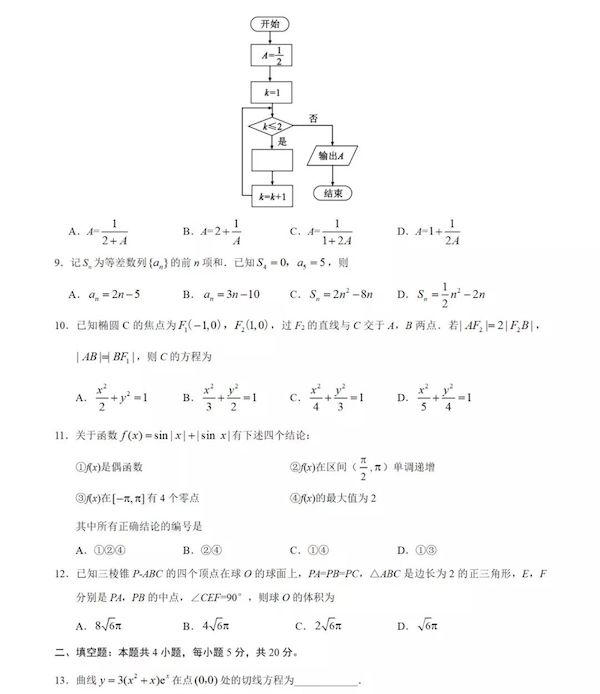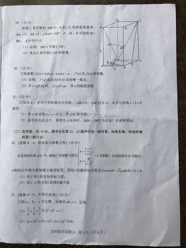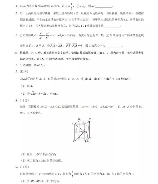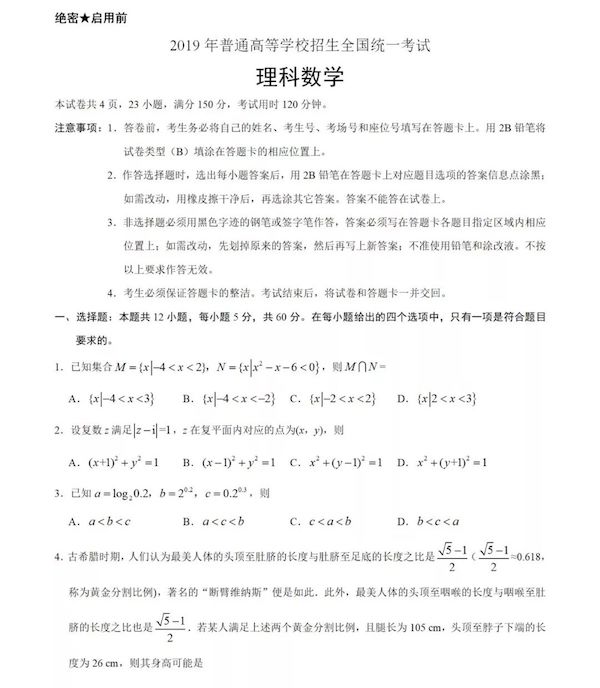 2019全國卷I·文科數(shù)學(xué)·原卷
