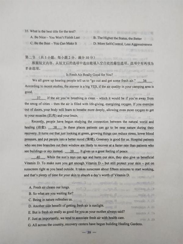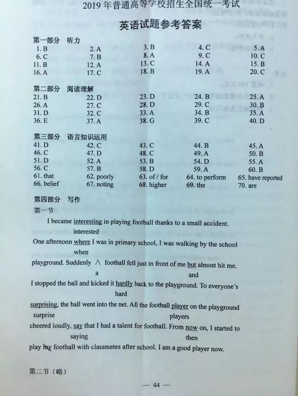 2019全國卷I·英語·標(biāo)準(zhǔn)答案