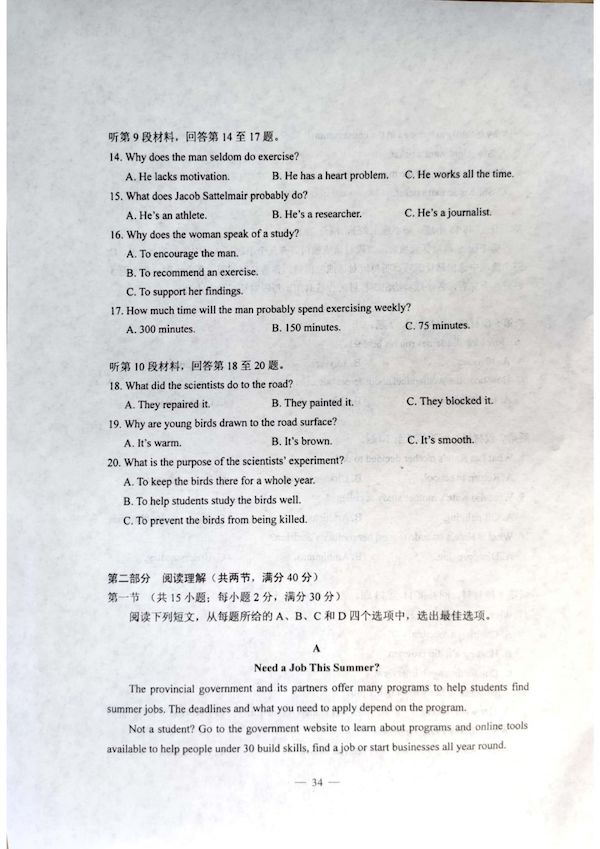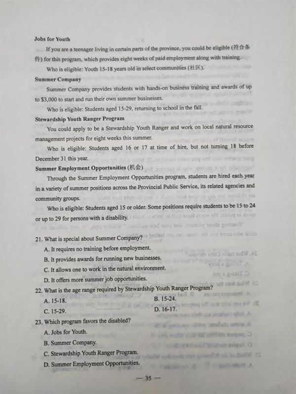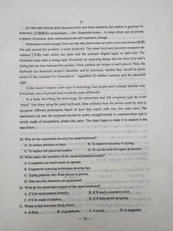 恭喜考完的同學(xué)們,屬于你們的專屬試卷小編們整理出來了,終于可以放心對答案了。