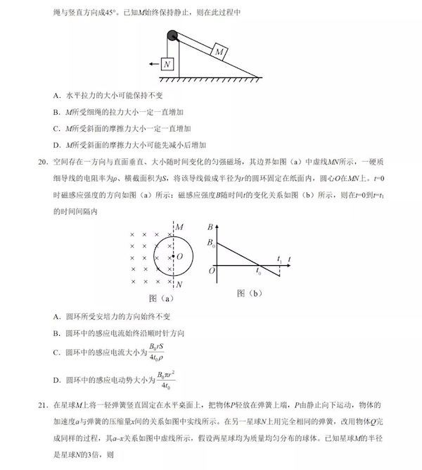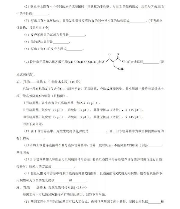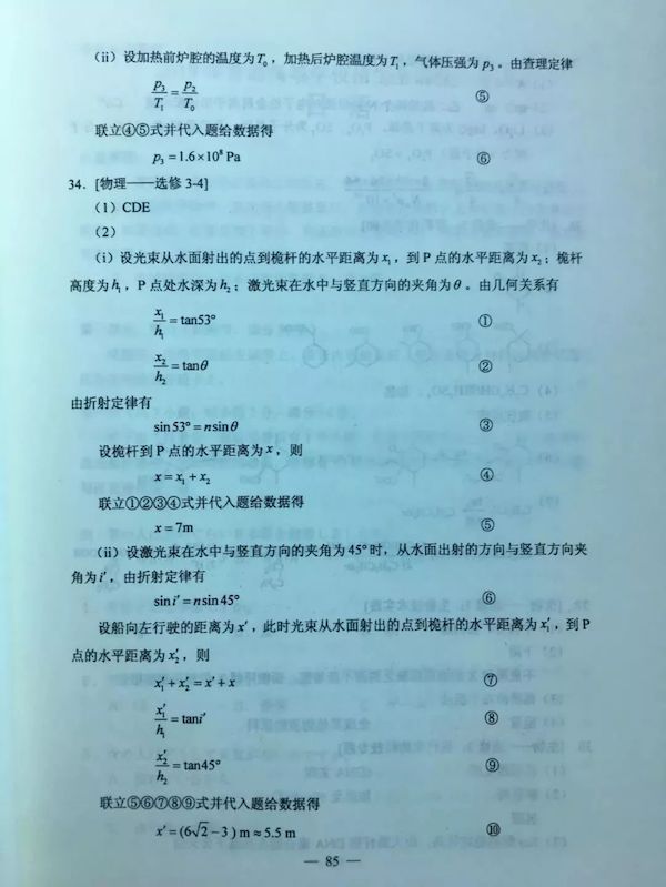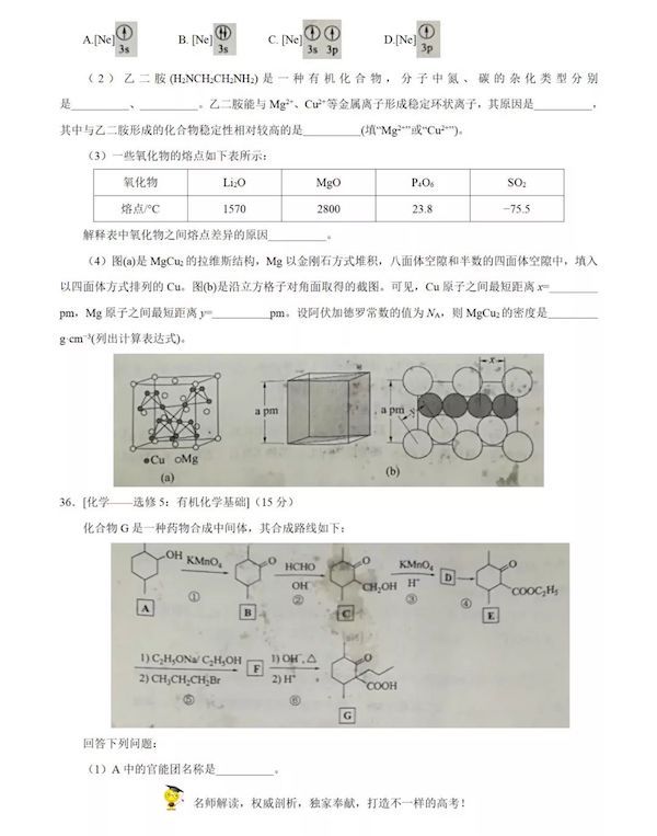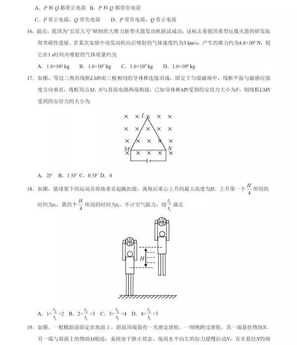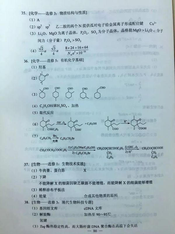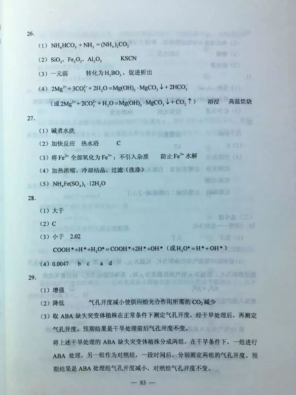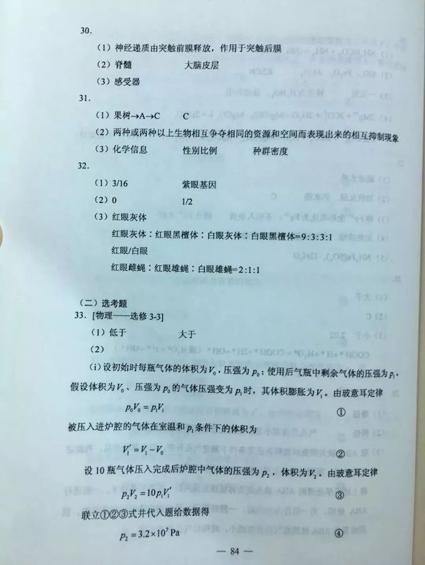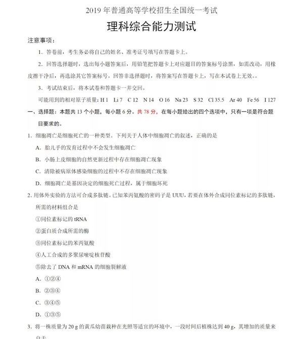 2019全國卷I·理綜·標(biāo)準(zhǔn)答案
