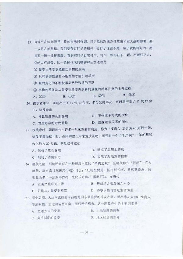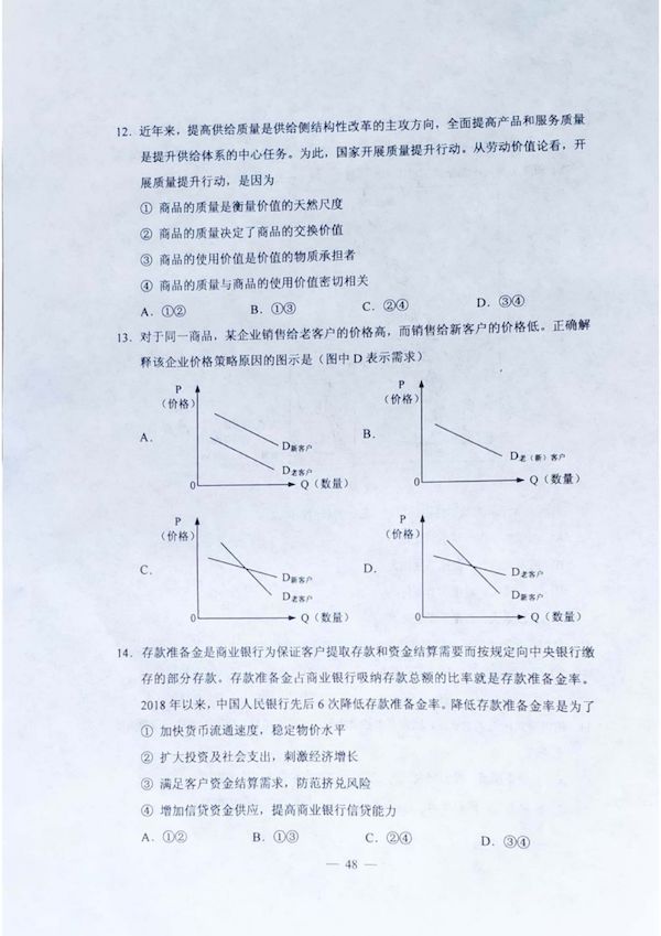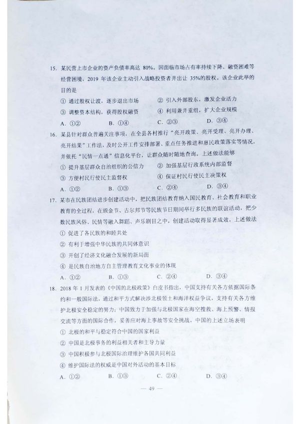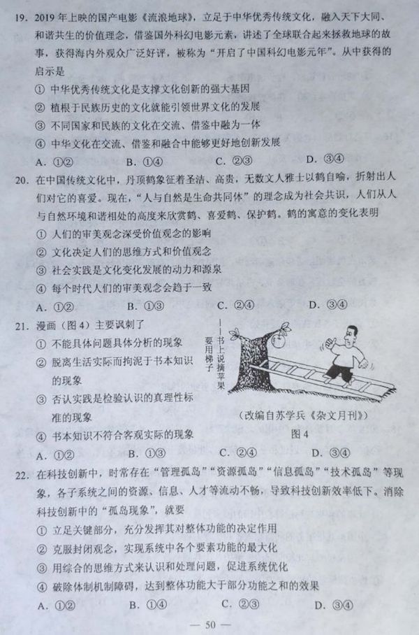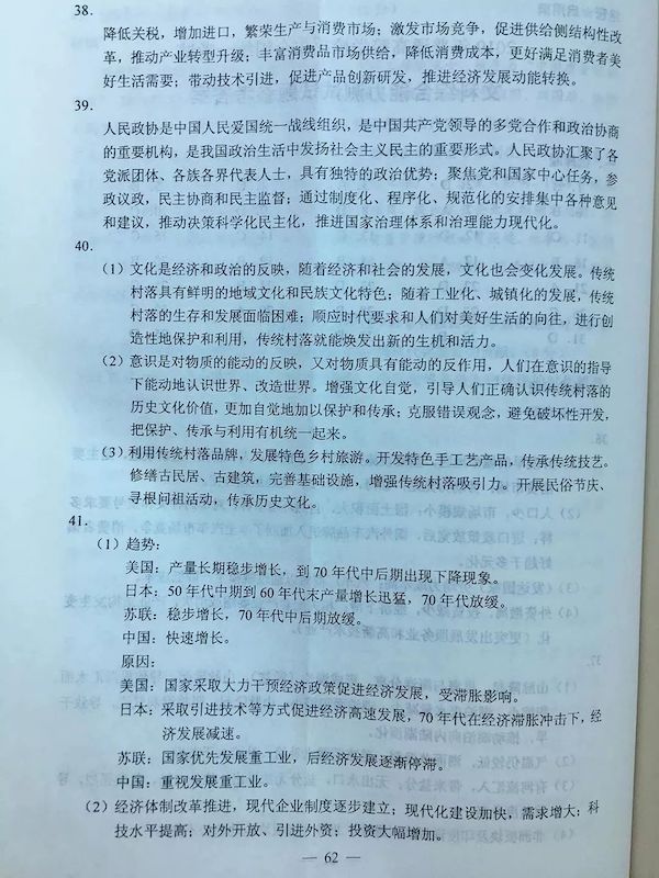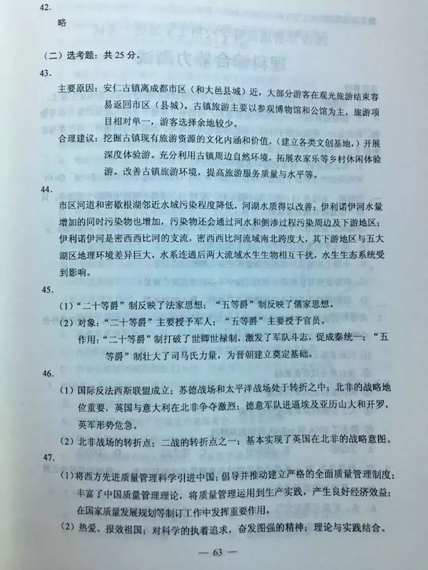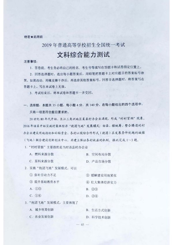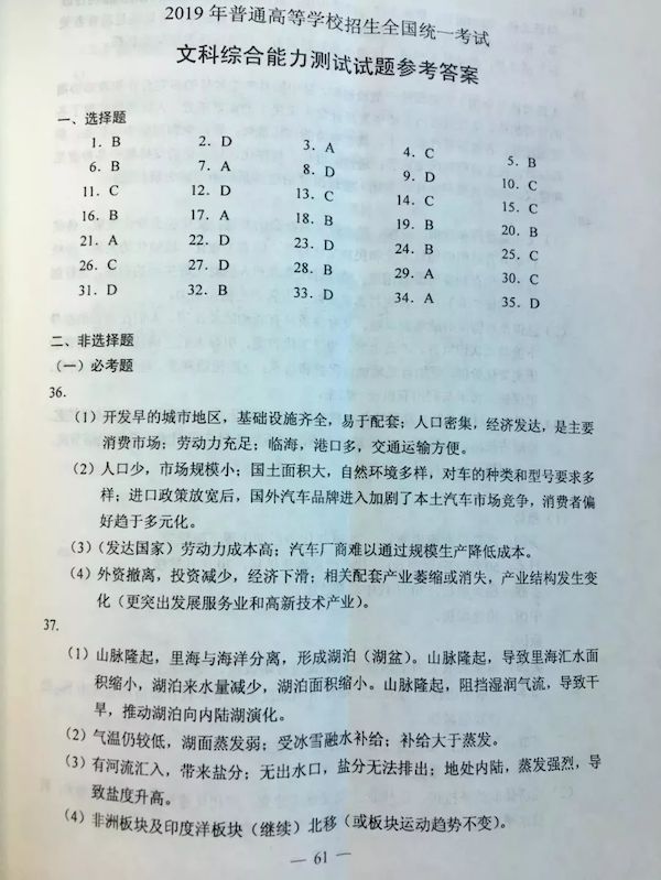 2019全國卷I·文綜·標(biāo)準(zhǔn)答案