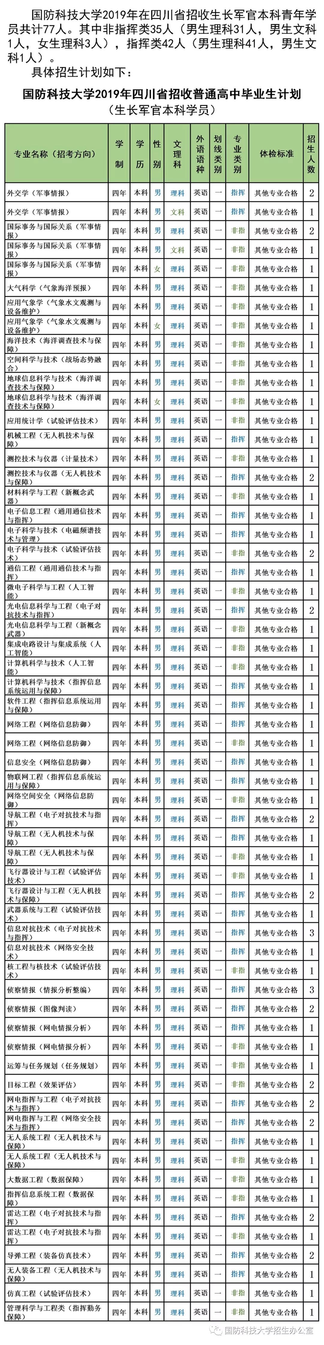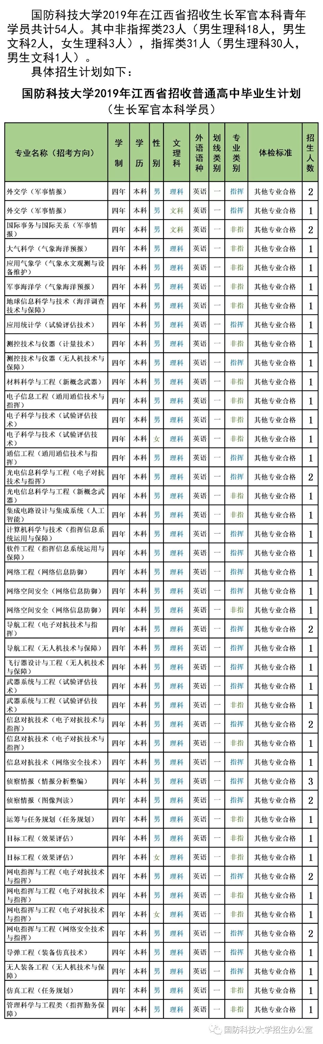 今天從有關(guān)部門獲悉,2019年軍隊(duì)院校招收普通高中畢業(yè)生計(jì)劃已確定。截至今天中午,已有6所軍校向社會公布了詳細(xì)的招生計(jì)劃。為方便大家查看,進(jìn)行匯總推送。